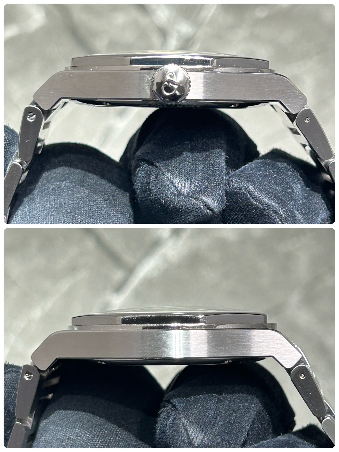 未使用での持ち込みで使用感は感じない個体なのですが鏡面部分等に微細なスレやバックル開閉部分に小傷(最後の写真参照)が確認でき、2022年の個体でしたため極美品中古ランクにて出品させて頂きます。