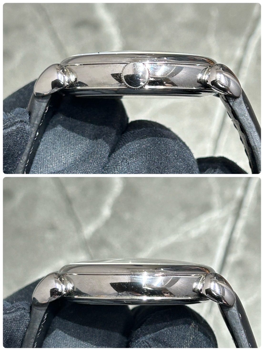 ストラップも使用感が少なくまだまだご愛用頂けるコンディションとなっております。ガラス12時位置付近に微細な埃の混入は確認できますが(最後の写真参照)肉眼での確認もできなかったため中古美品として出品させて頂きます。