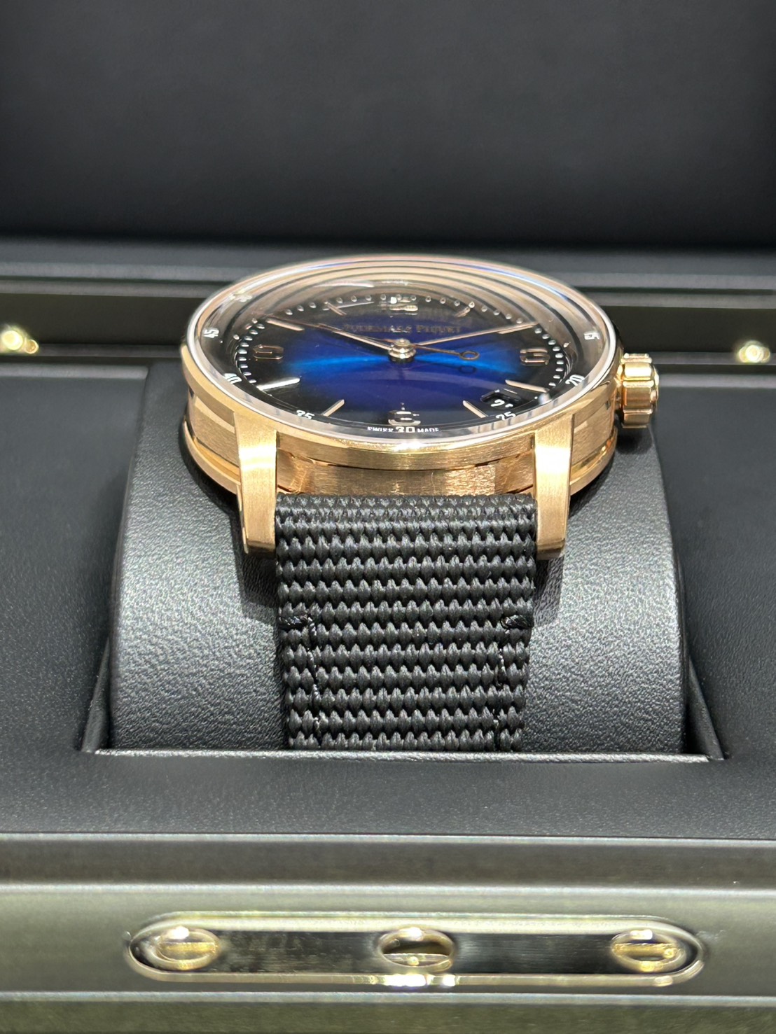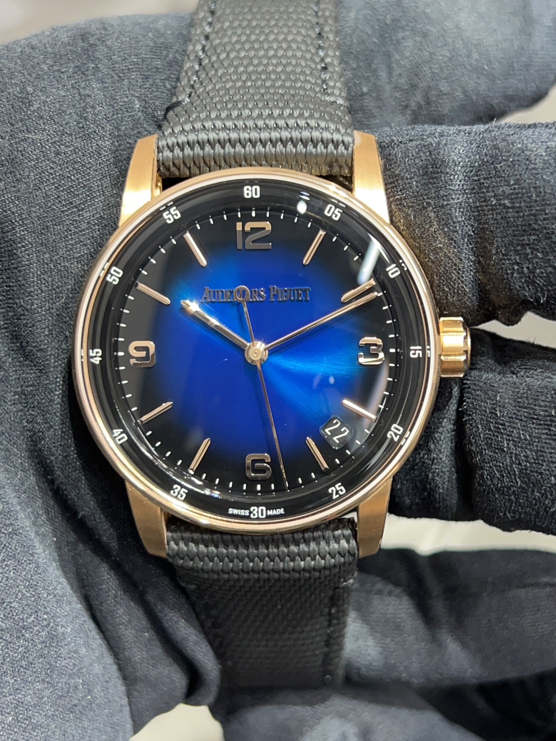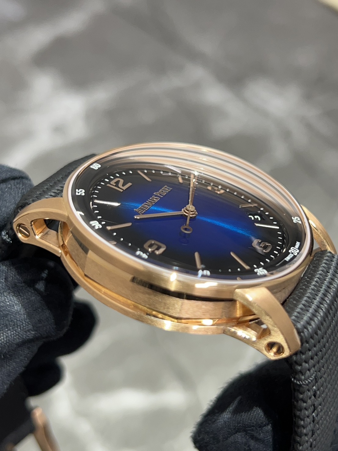 説明不要の大人気のブルー文字盤でございます!ピンクゴールドと鮮やかなブルー文字盤の組み合わせがとても妖艶です。