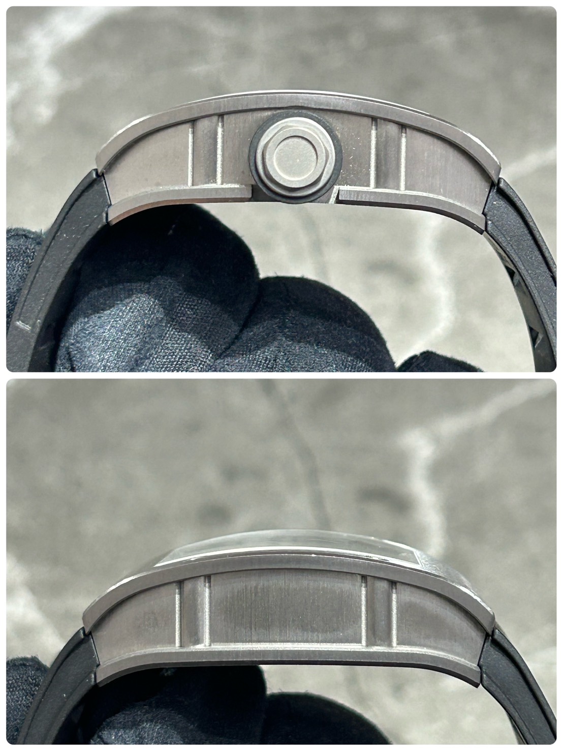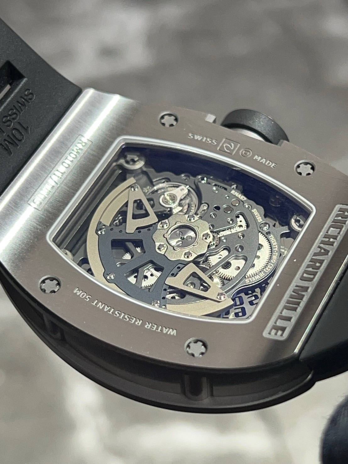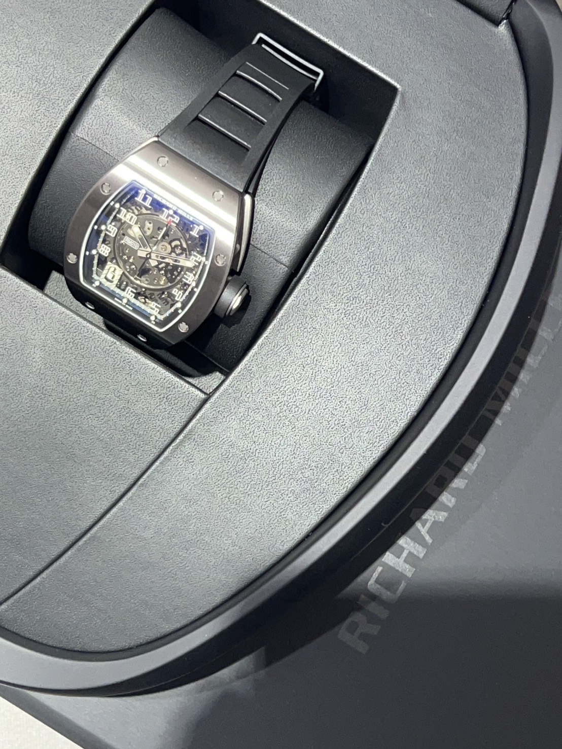 ケースはグレード5チタン製の為非常に軽量で、リシャールミルが誇る頑丈さも兼ね備えております。