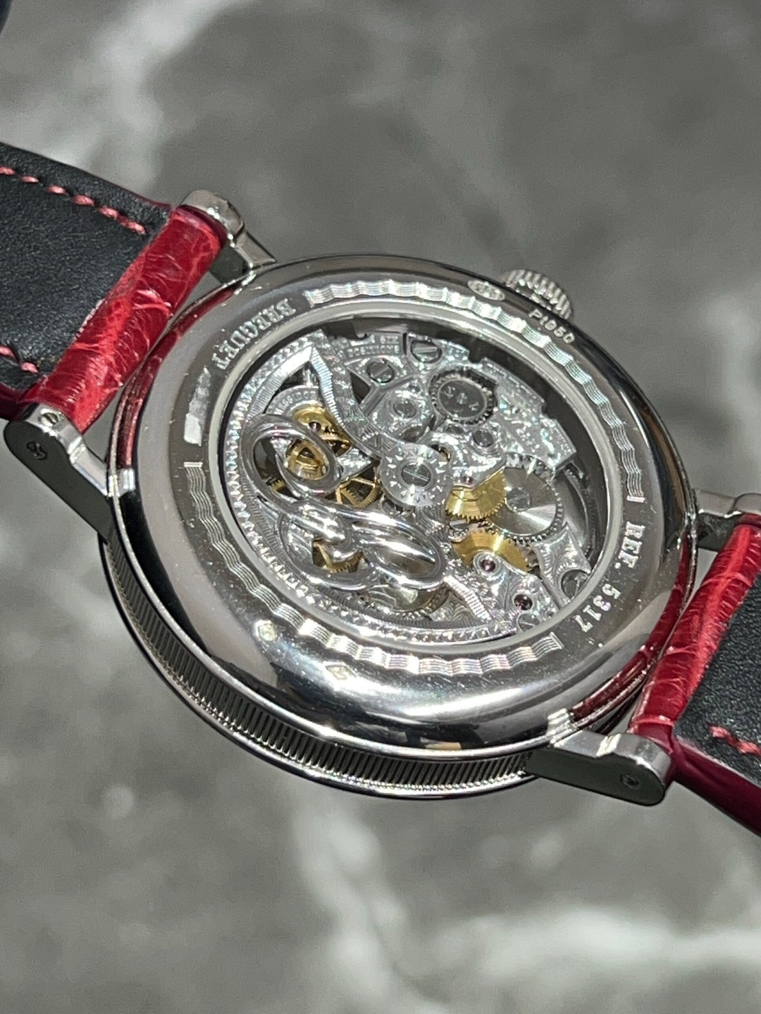 裏蓋からはCal.587DRを鑑賞でき、随所にエングレービングが施され、芸術品の様な美しさとなっております。Dバックルもプラチナ製の為重厚感があり、なかなかお目にかかれないモデルになりますのでこの機会に是非ご検討宜しくお願いします。