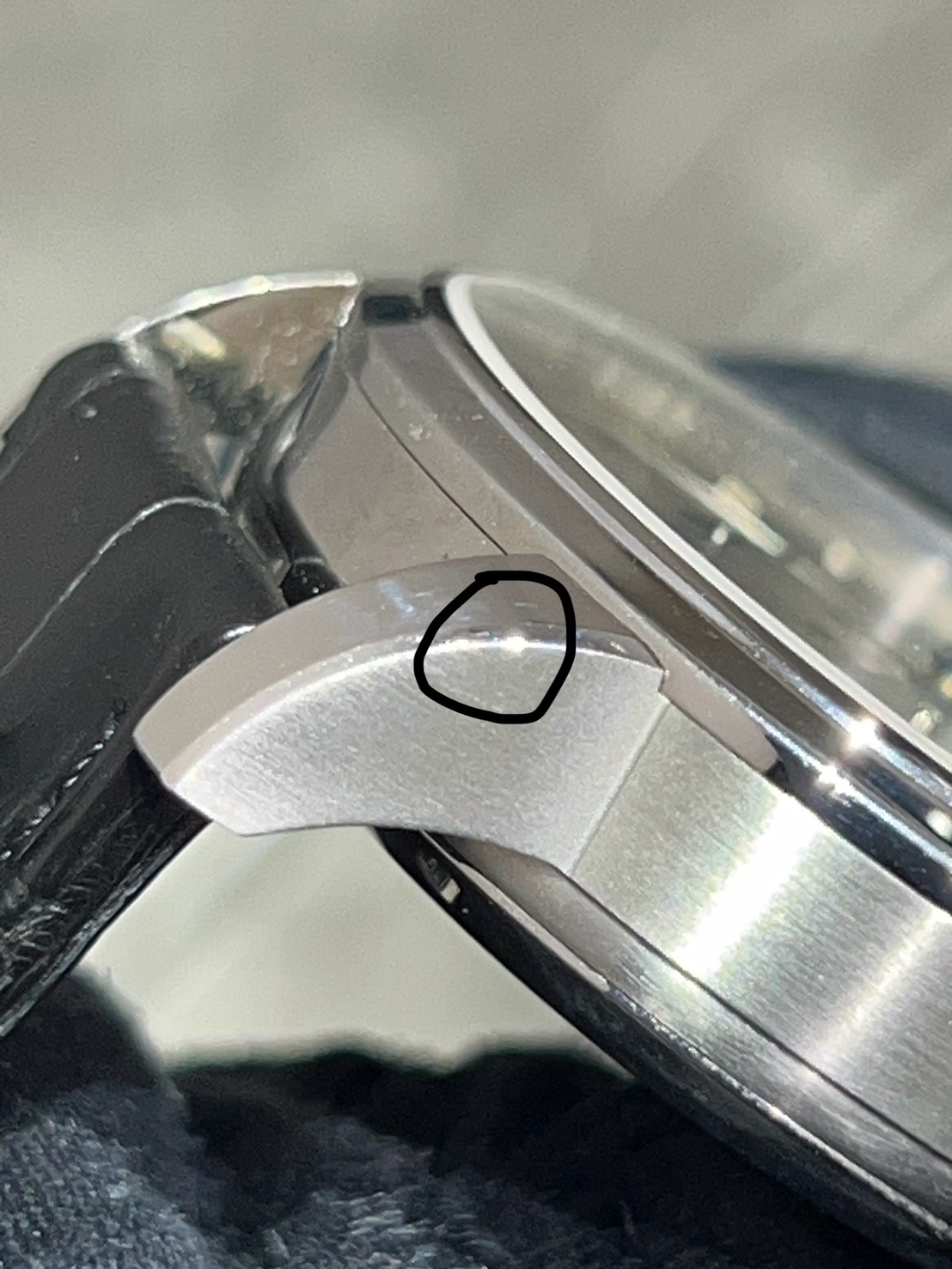 全体的にご愛用に伴う微細なスレが確認できますが年式も新しく深い傷が見受けられないため中古美品として出品させて頂きます。5時側ラグに光に当てれば確認できるレベルの小傷がございますので予めご承知おきください。