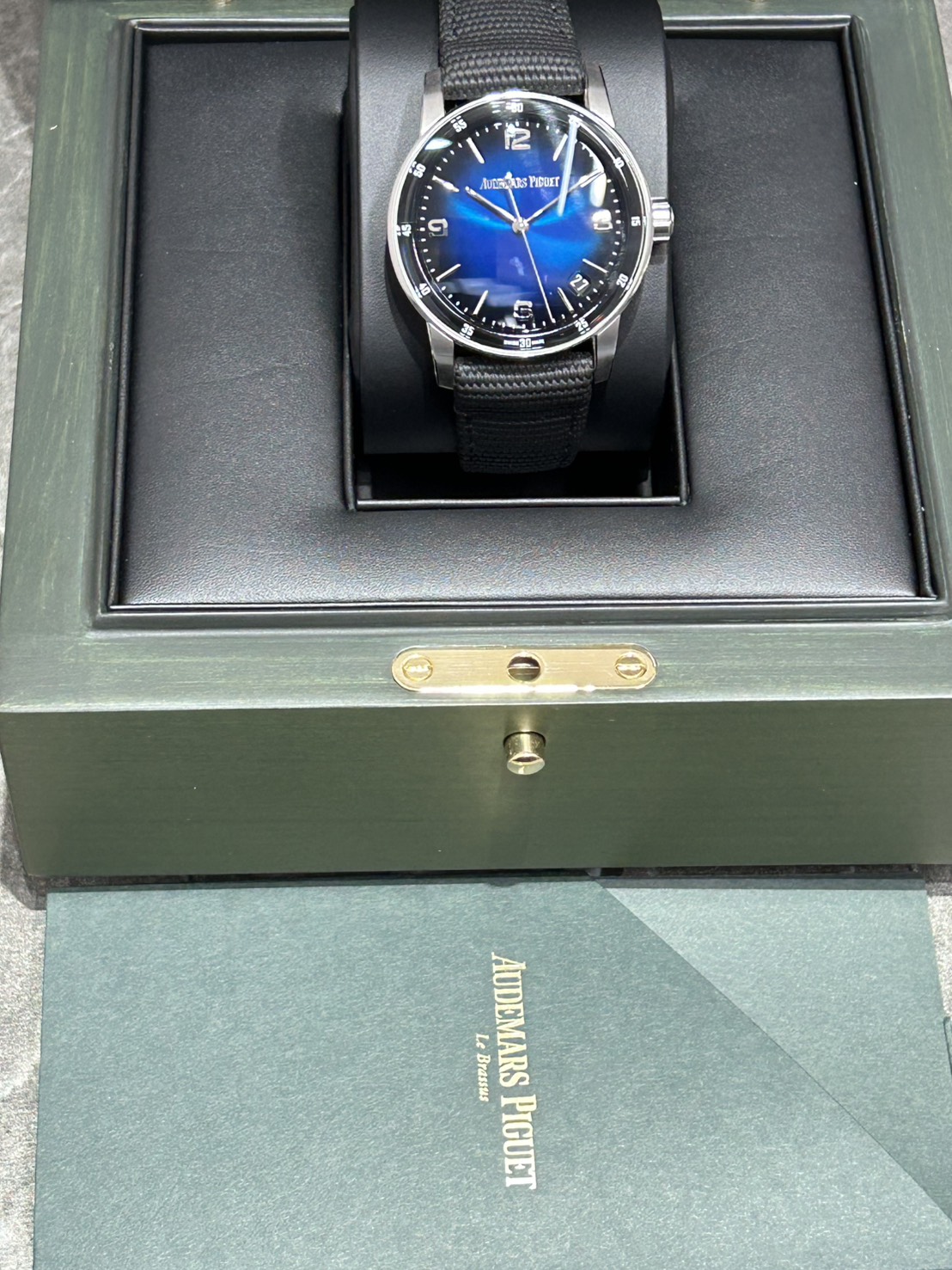 説明不要の大人気のブルー文字盤でございます!ホワイトゴールドと非常にきれいなブルー文字盤の組み合わせは圧巻です。