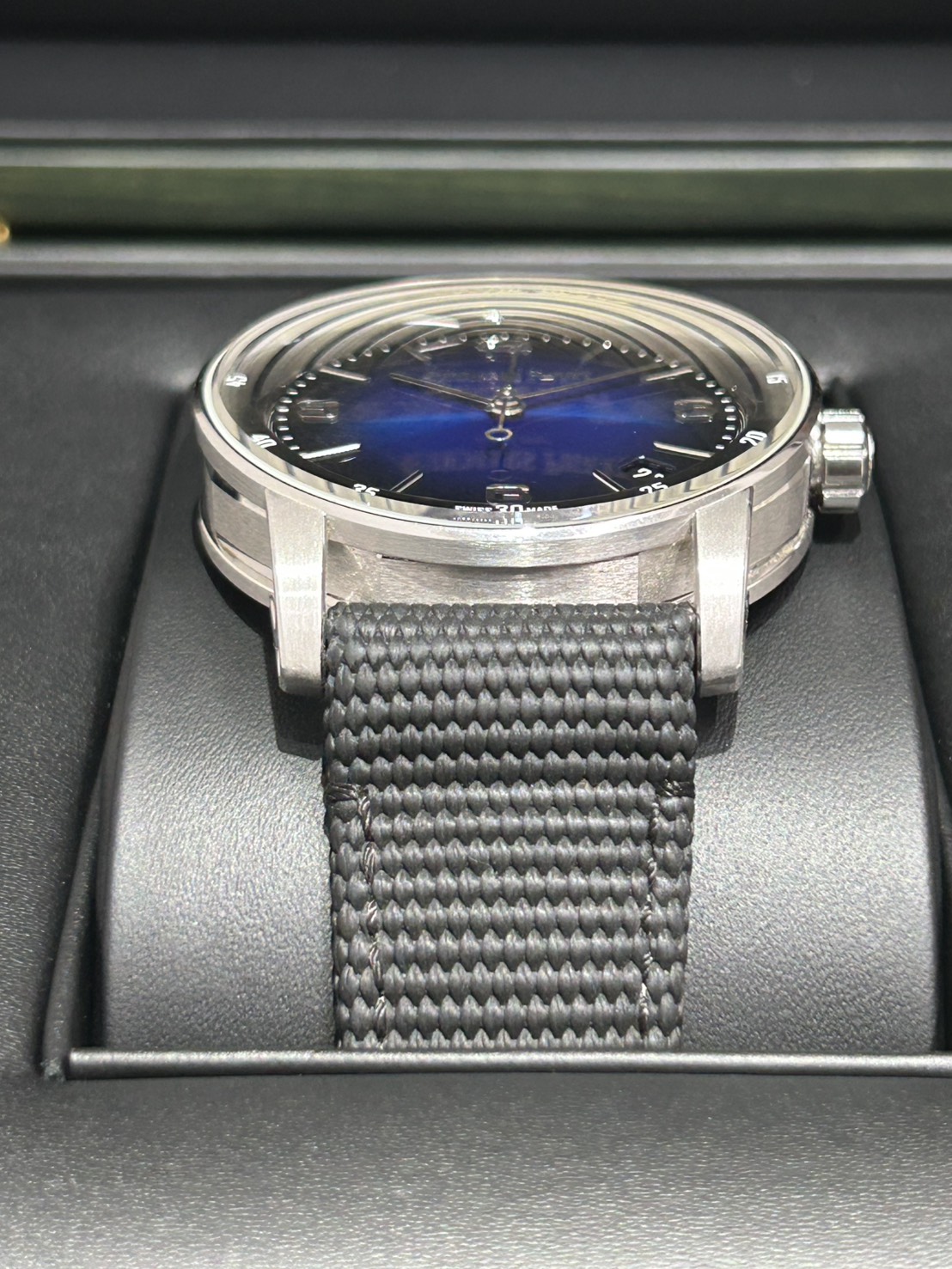 ダイヤルカラー:サンバースト模様のスモークブルーラッカーダイヤル