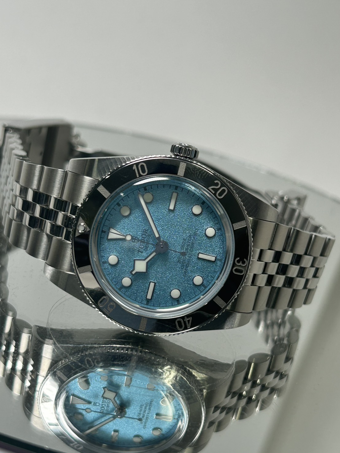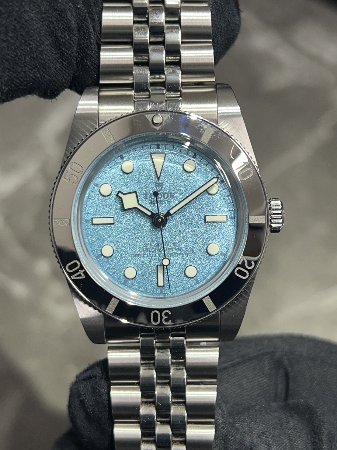 チューダーのフラッグシップモデルであるブラックベイ、今回は37㎜の引き締まったサイズ感にサンドテクスチャーの「ラグーンブルー」ダイアル、さらにポリッシュ仕上げのベゼルで煌びやかな雰囲気を醸す2025年の新作モデルが入荷致しました。