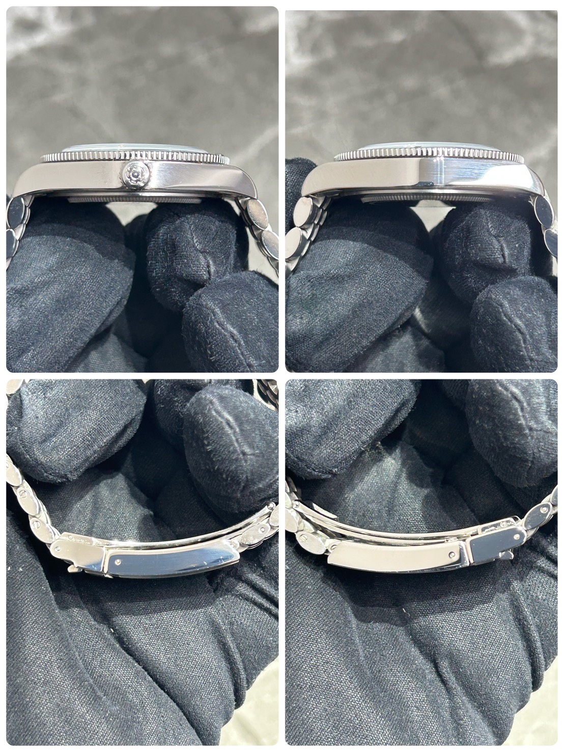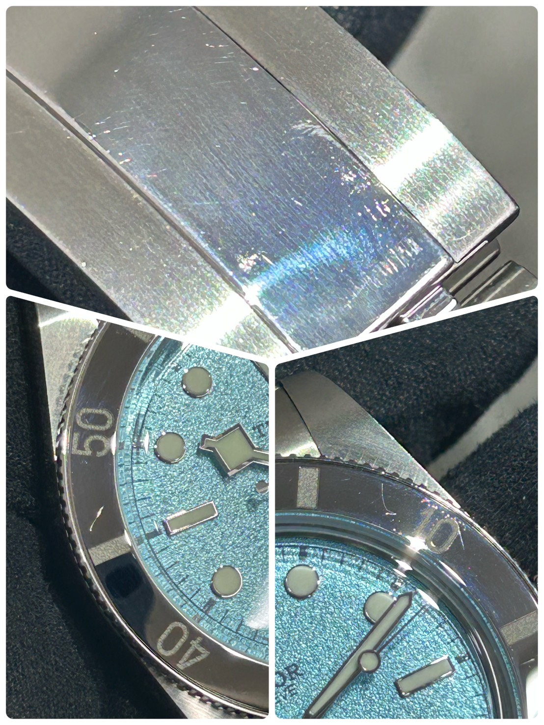 ご愛用に伴うスレが全体的にあり、2時、9時位置ベゼルに線キズがございます。