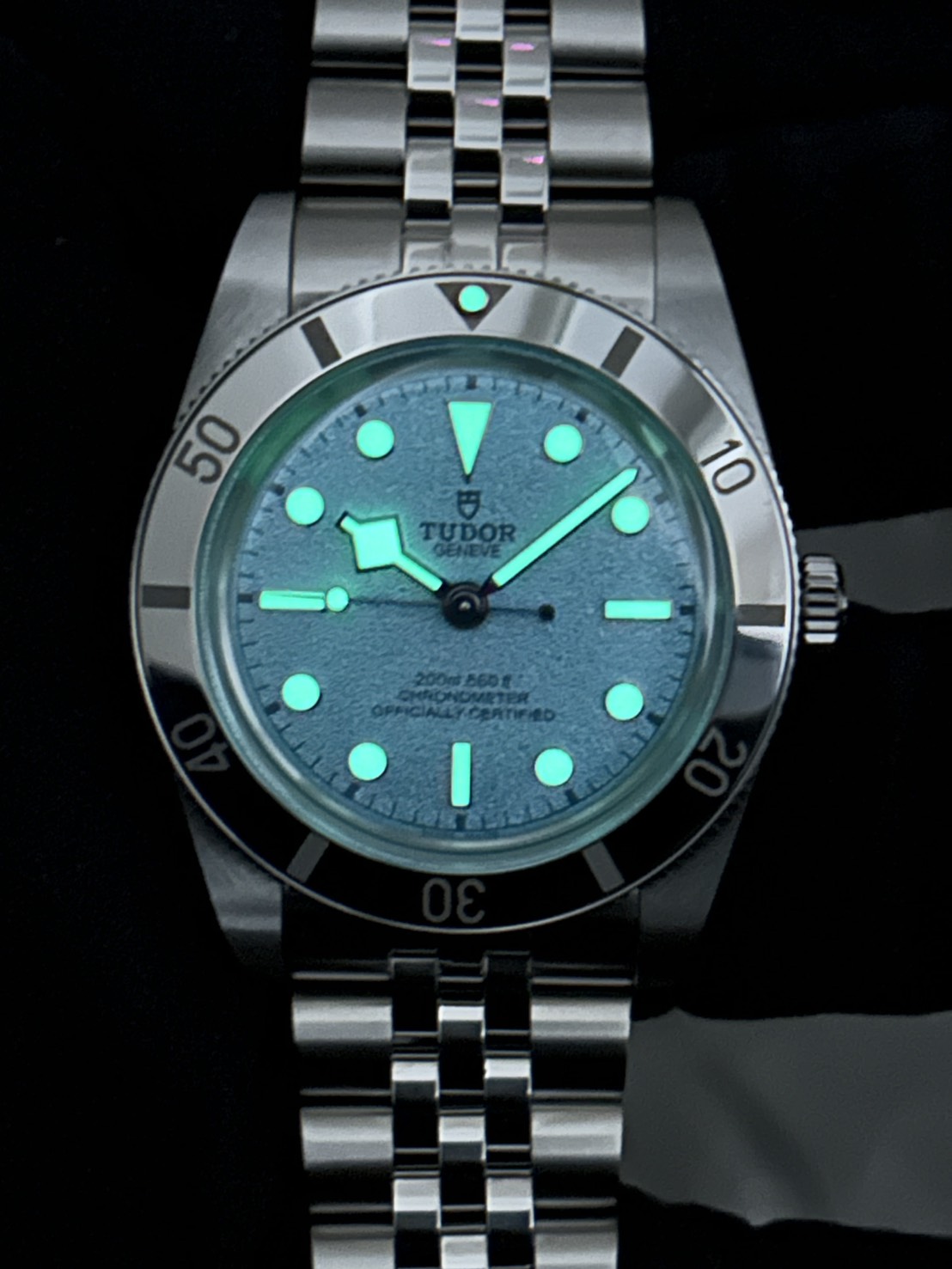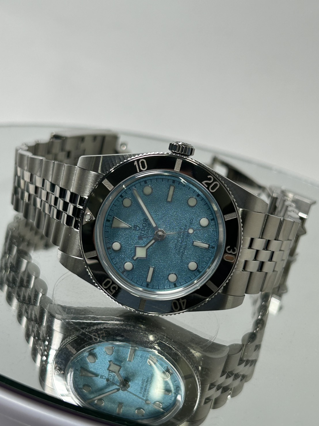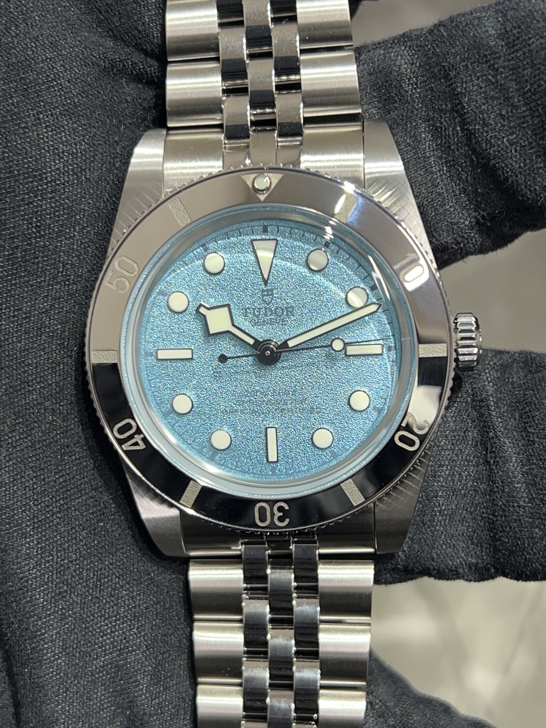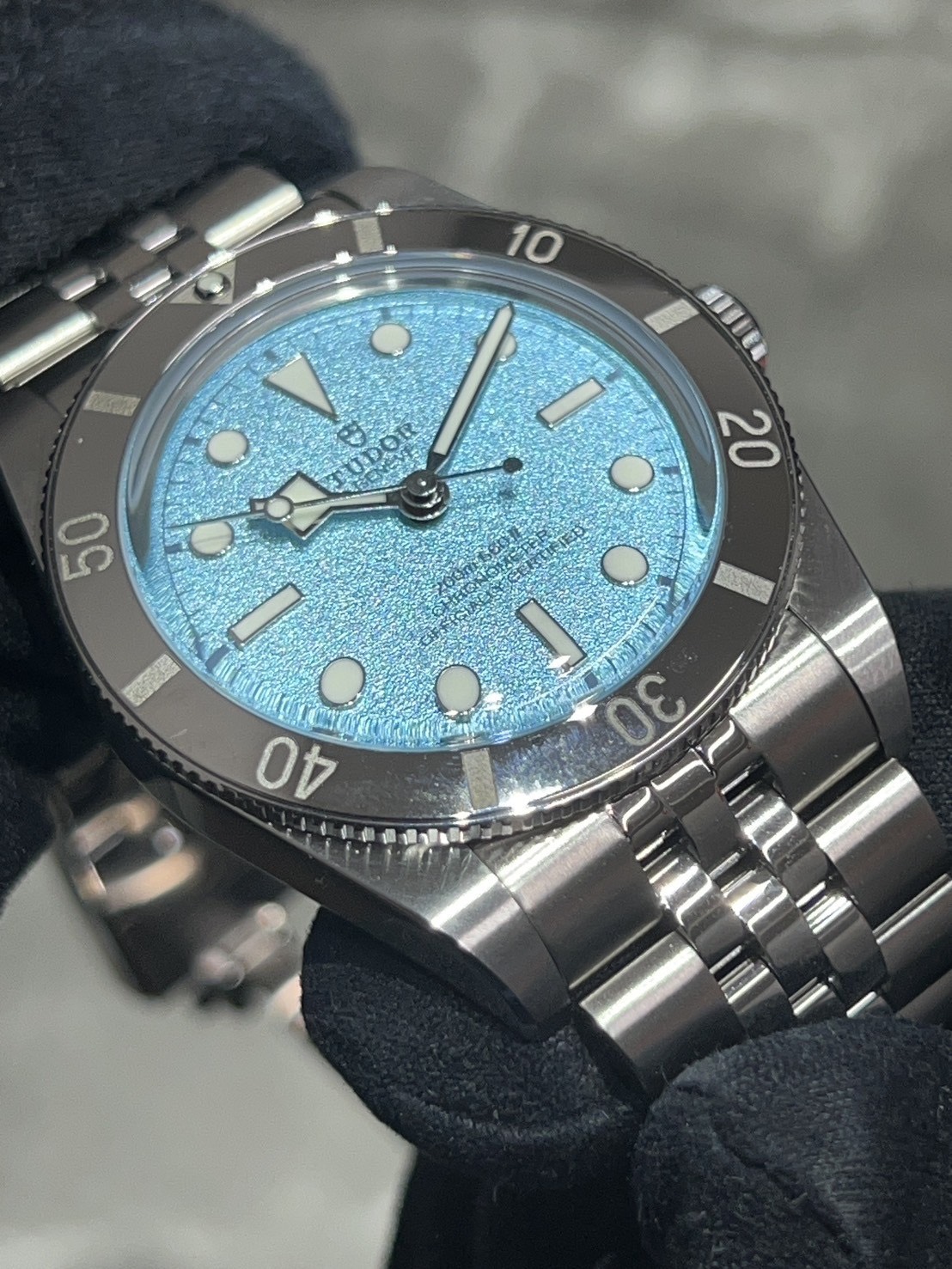チューダーのフラッグシップモデルであるブラックベイ、今回は37㎜の引き締まったサイズ感にサンドテクスチャーの「ラグーンブルー」ダイアル、さらにポリッシュ仕上げのベゼルで煌びやかな雰囲気を醸す2025年の新作モデルが入荷致しました。