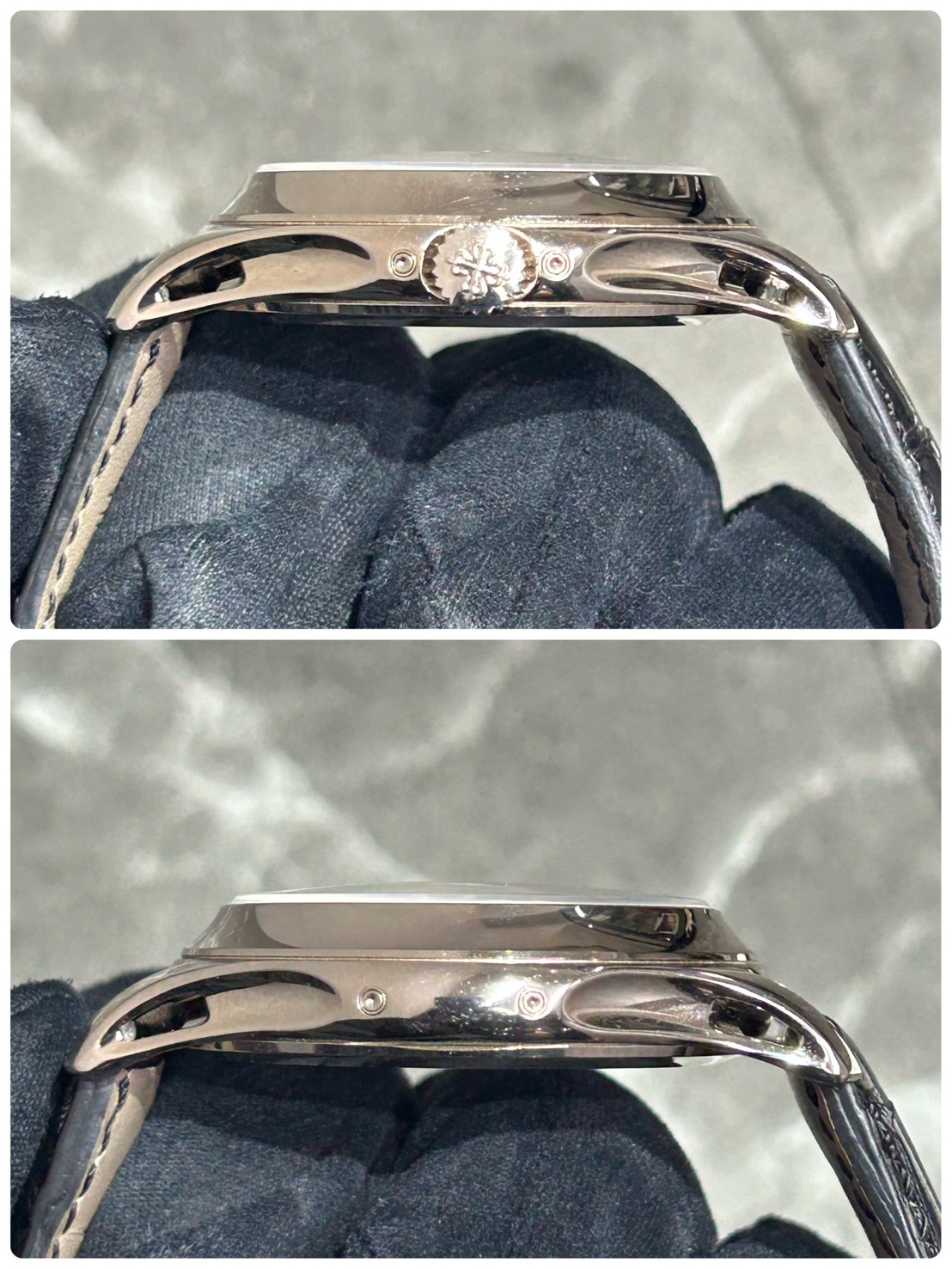 また、高級感のあるストラップにこちらの個体は無垢素材に嬉しいDバックル付きとなっております。