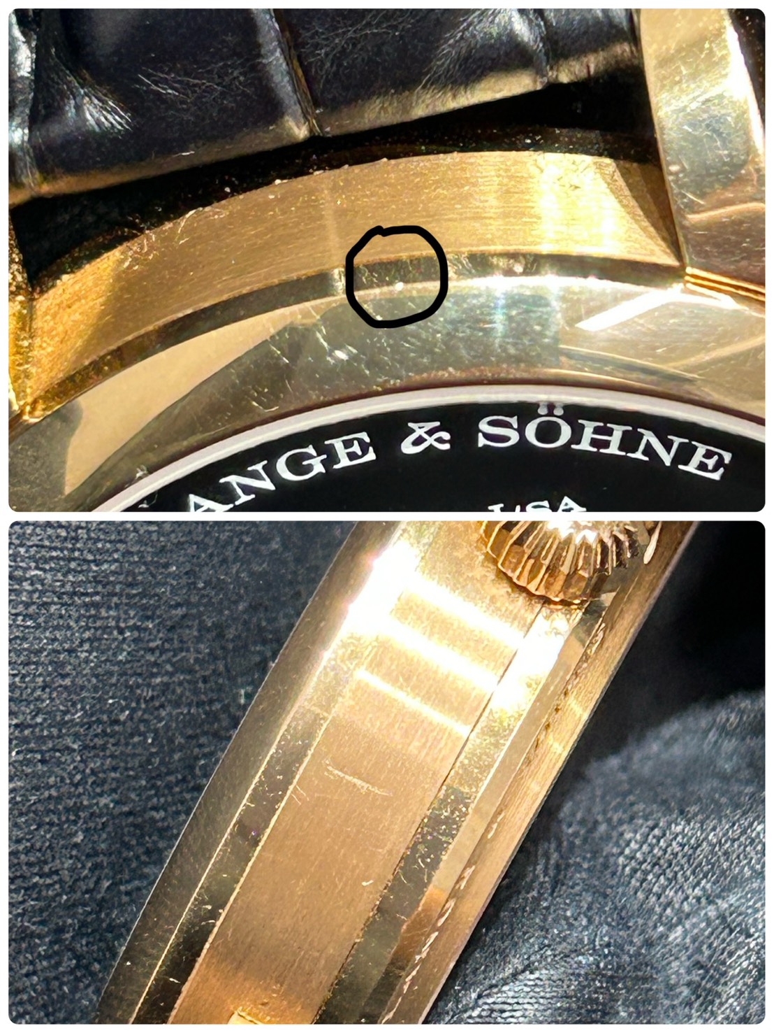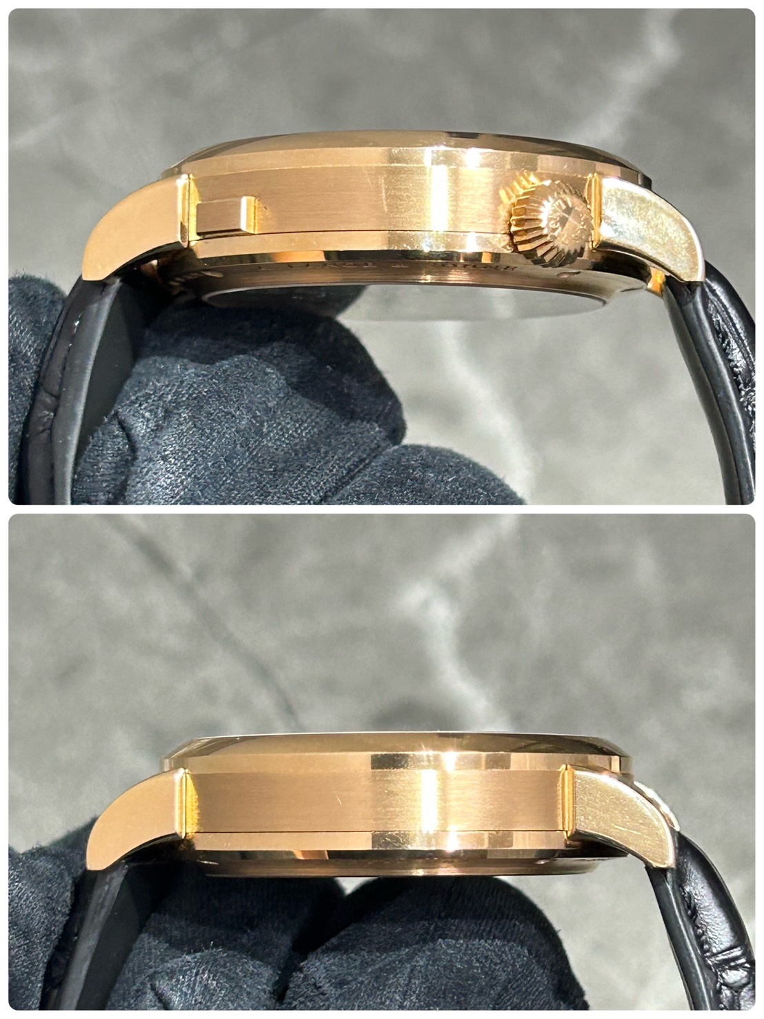 全体的にご愛用に伴う微細なスレが確認できます。ケースサイドに薄い線傷、ベゼル12時位置に極小の打痕が確認できますが目立たないレベルで全体的に綺麗だったため中古美品として出品させて頂きます。