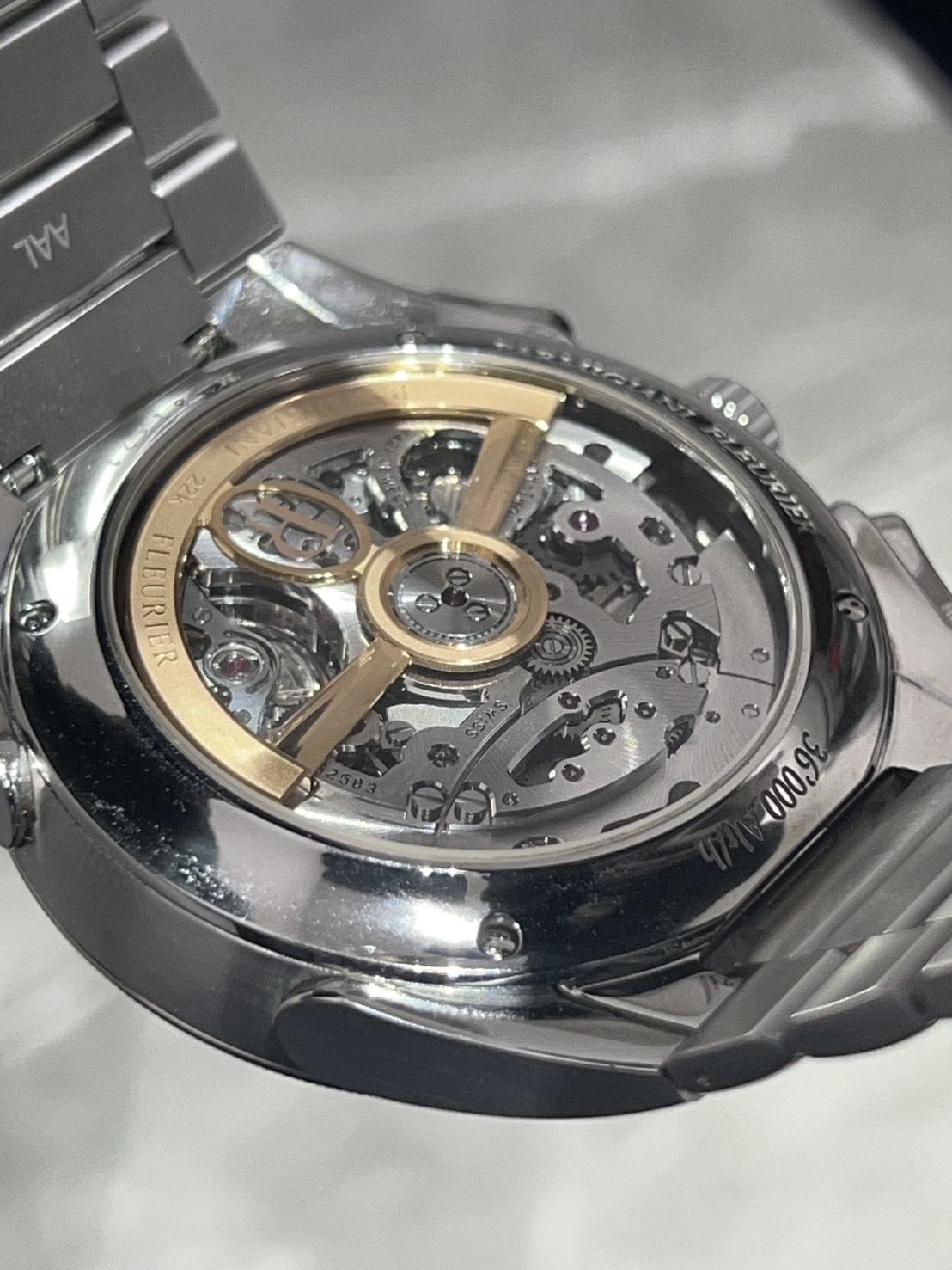 また、秒針なのですが若干ずれてるように見えます(肉眼では気にならないレベルです、最後の写真をご覧ください)が精度も+2秒と動作も良好でしたので現況のまま販売させて頂きます。