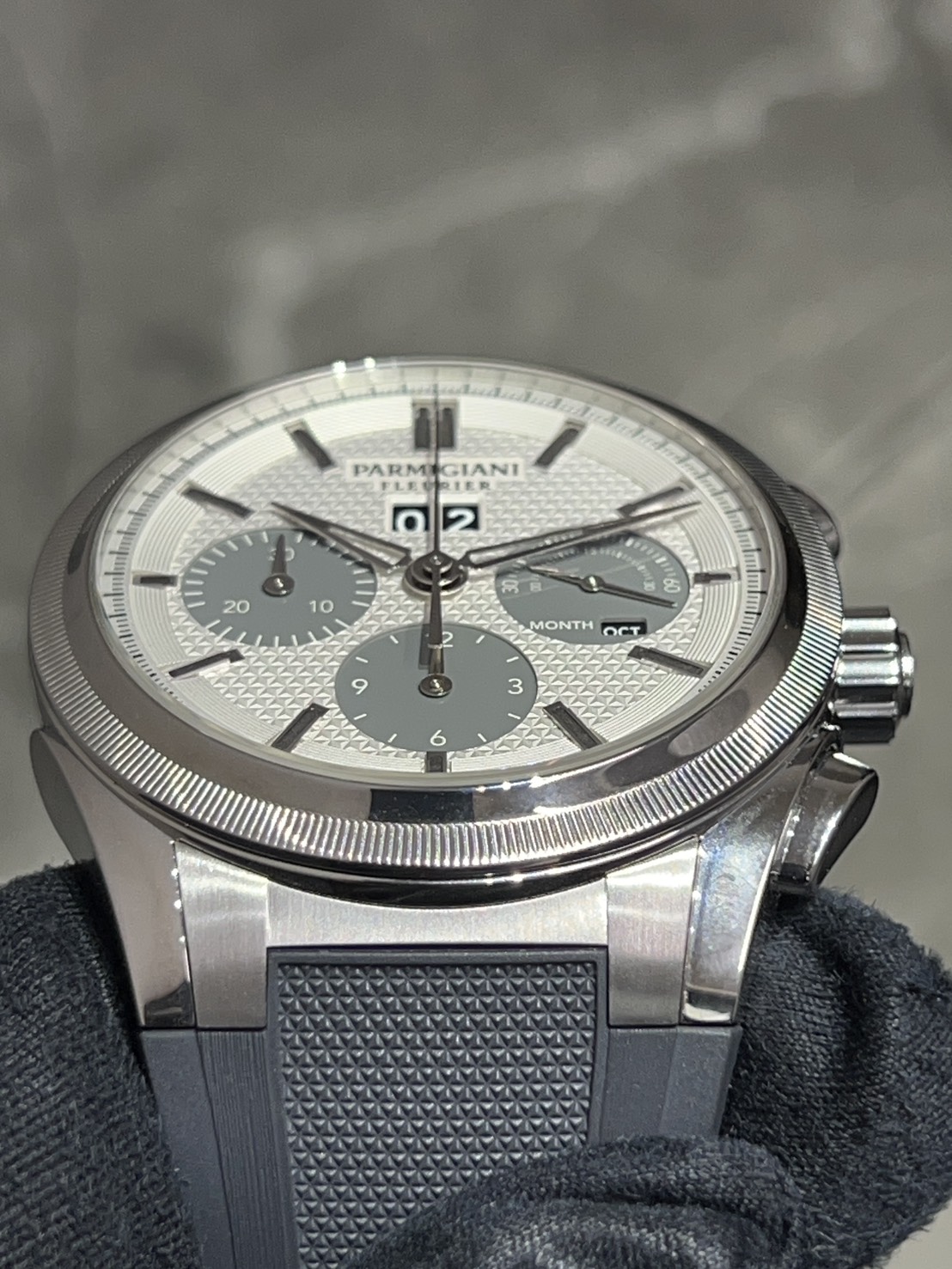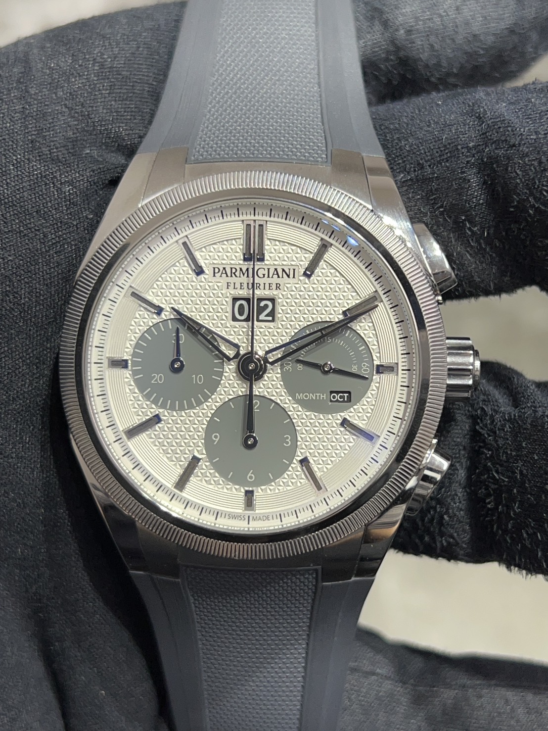 スイスの高級時計ブランド、パルミジャーニ・フルリエが2020年に発表した、スポーツモデルのコレクションであるトンダGT、今回はギョーシェが施されたシルバー文字盤にクアンタムグレー、カレンダー機能が備わったトンダGTクロノグラフが入荷致しました!