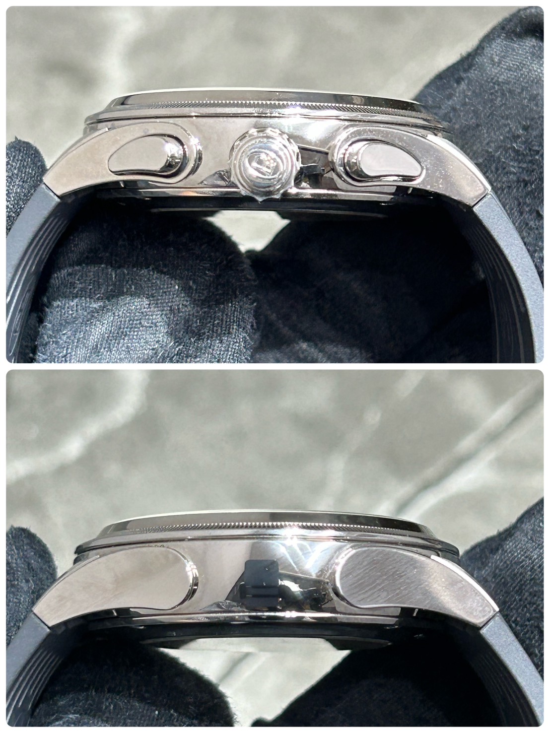 ガラスを包むベゼルは鏡面となっておりその外側でローレット加工が施されております。