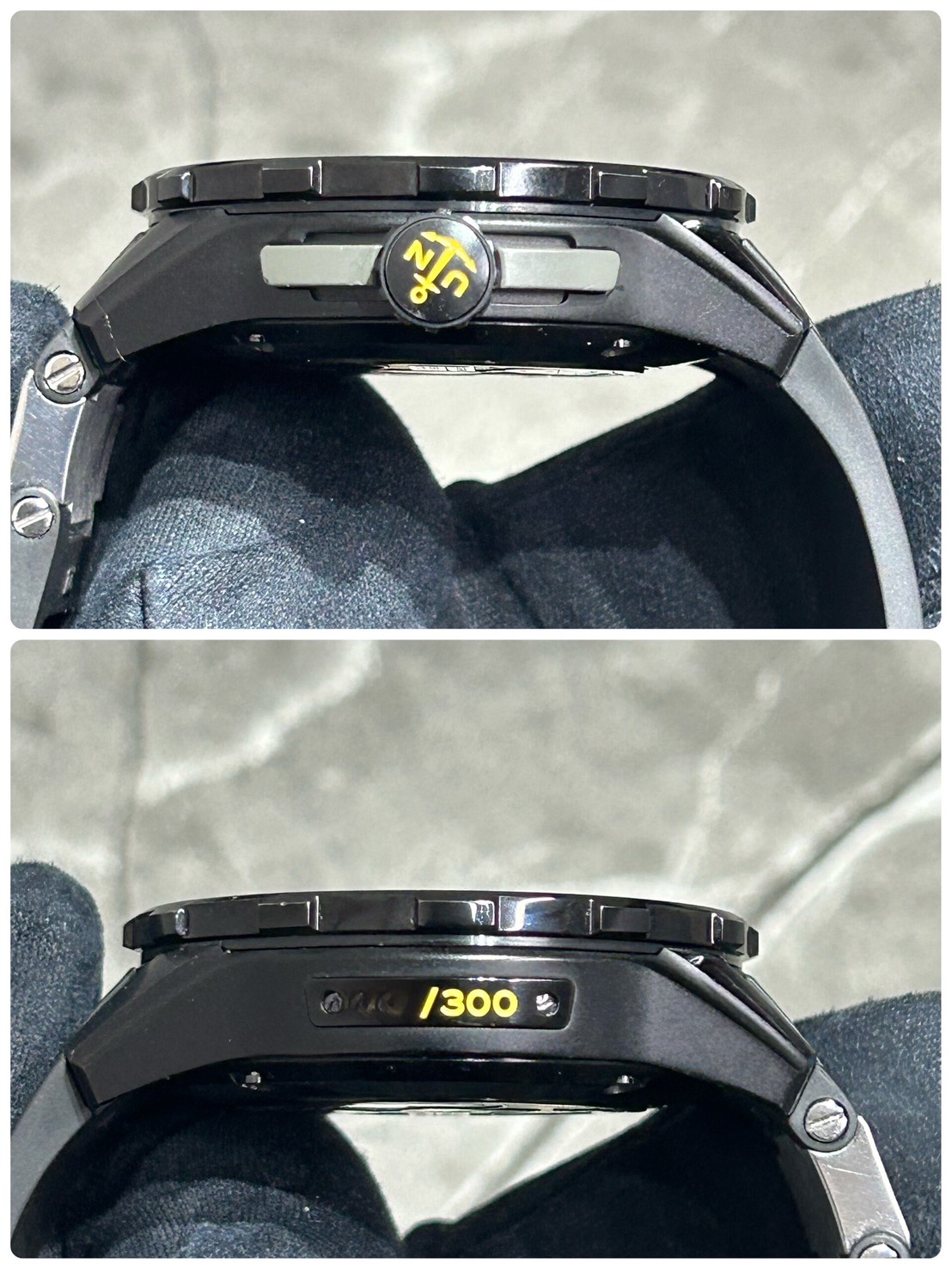 佇まいは大変スタイリッシュでカーボンもブラック色である事からオールブラックのような力強さに文字盤をじっと見るとモデル名の通りXと装飾されております。