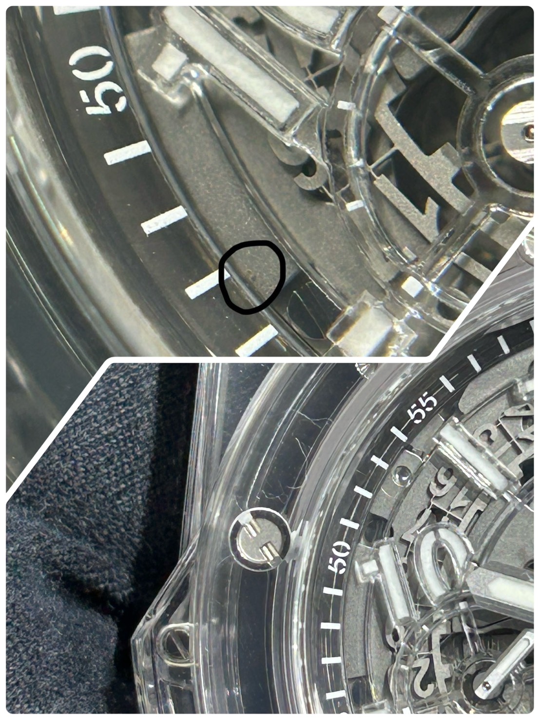 文字盤に微細な埃の混入は見受けられますが肉眼での確認が困難なレベルです。