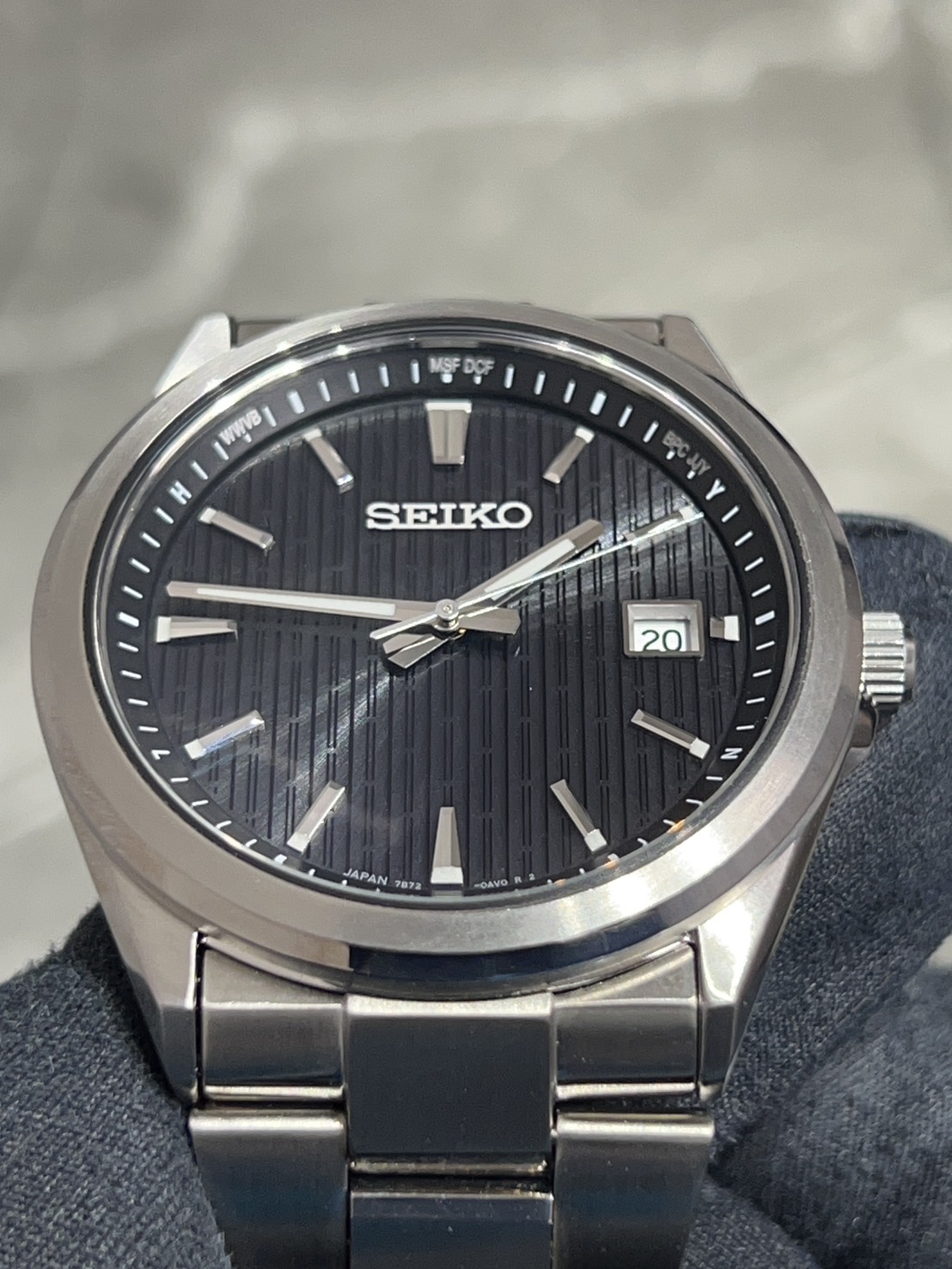 搭載ムーブメントは、光で充電しながら正確な時刻を自動で受信するソーラー電波キャリバー7B72となり、海外の主要地域にも対応したマルチバンド仕様で出張や旅行の際も時刻合わせの手間がありません。