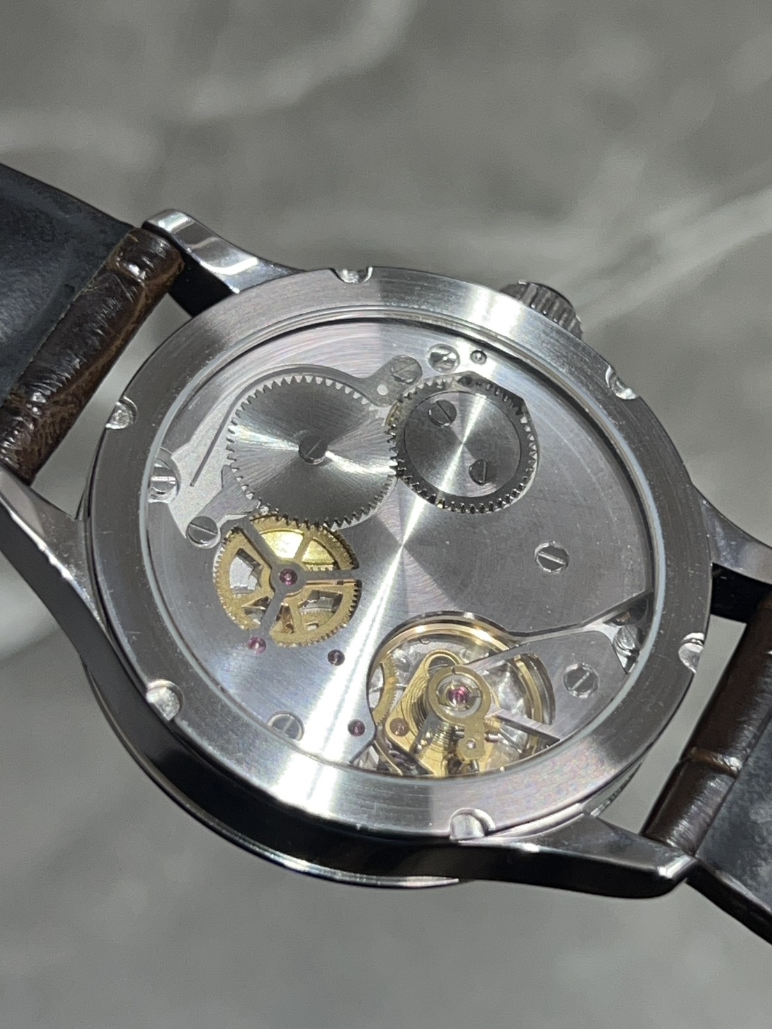 裏蓋からはムーブメントはA09MJを鑑賞する事ができ、ハンドワインドならではの操作感を楽しめます。