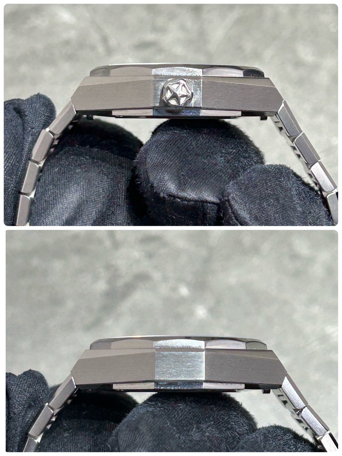 全体的にご愛用に伴う微細なスレがうっすらと確認できます。ブレスは光に当てると微細なスレ傷のようなものが確認できます。全体的な状態は非常によかったため中古美品として出品させて頂きます。
