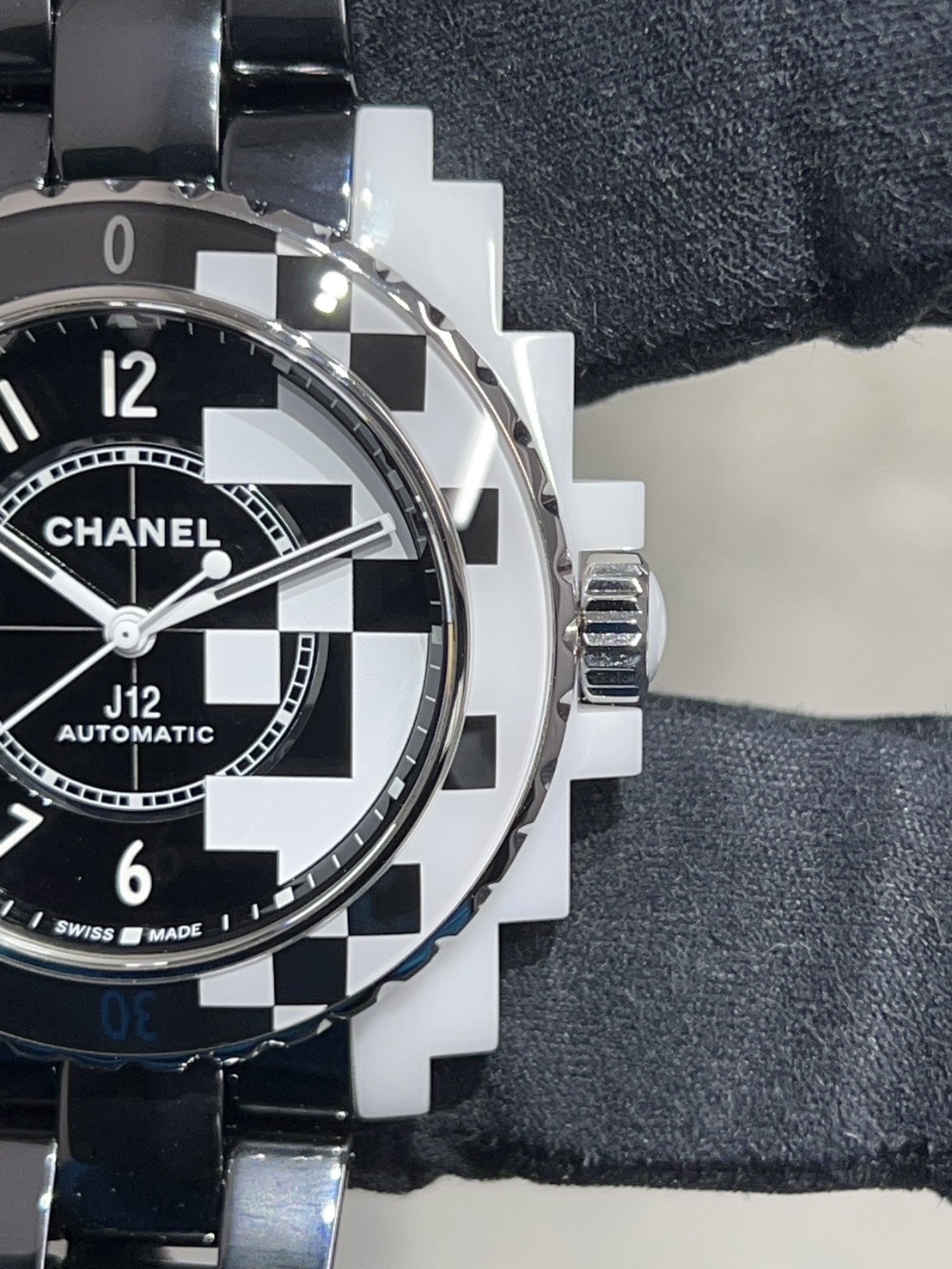 こちらのモデルはSFの世界、宇宙、タイムトラベルから着想を得た「シャネル インターステラー カプセル コレクション」となり、ケースや文字盤はピクセルアートの様なユニークな仕上がりとなっております。
