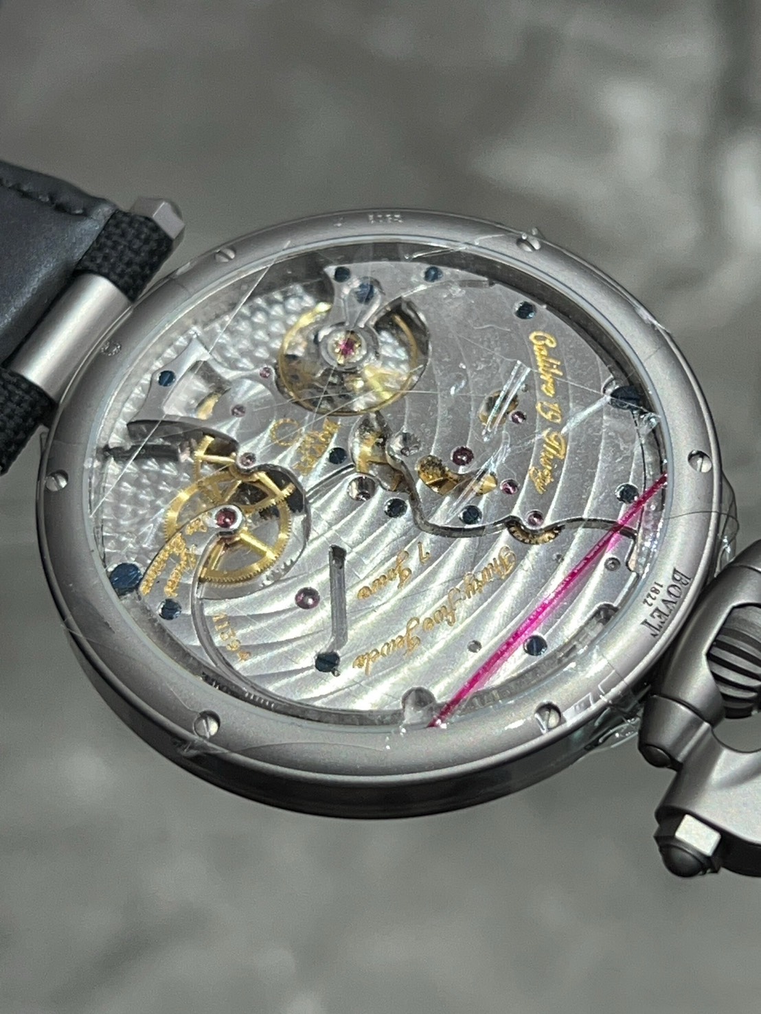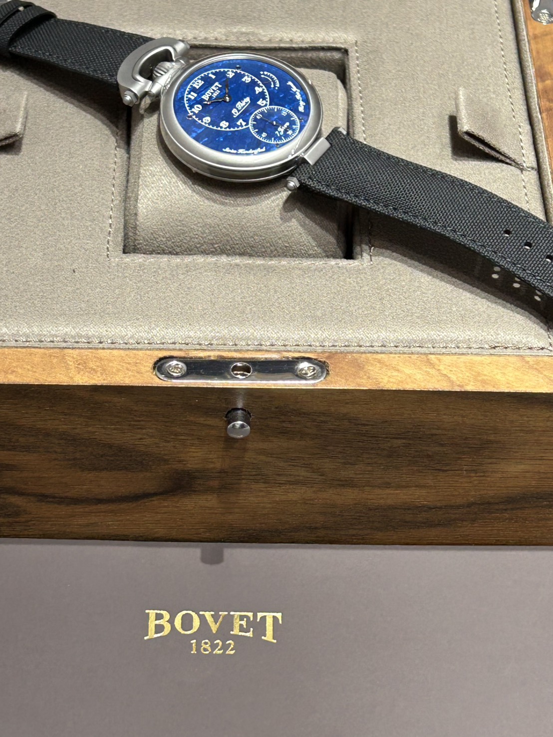 同モデルは1930年代の懐中時計をモデルにデザインされており、ボヴェの象徴であるリューズが12時側にセッティングされ懐中時計の雰囲気と左右どちらの利き腕でもなんの違和感もなくご愛用頂けるなんとも美しいモデルとなっております。