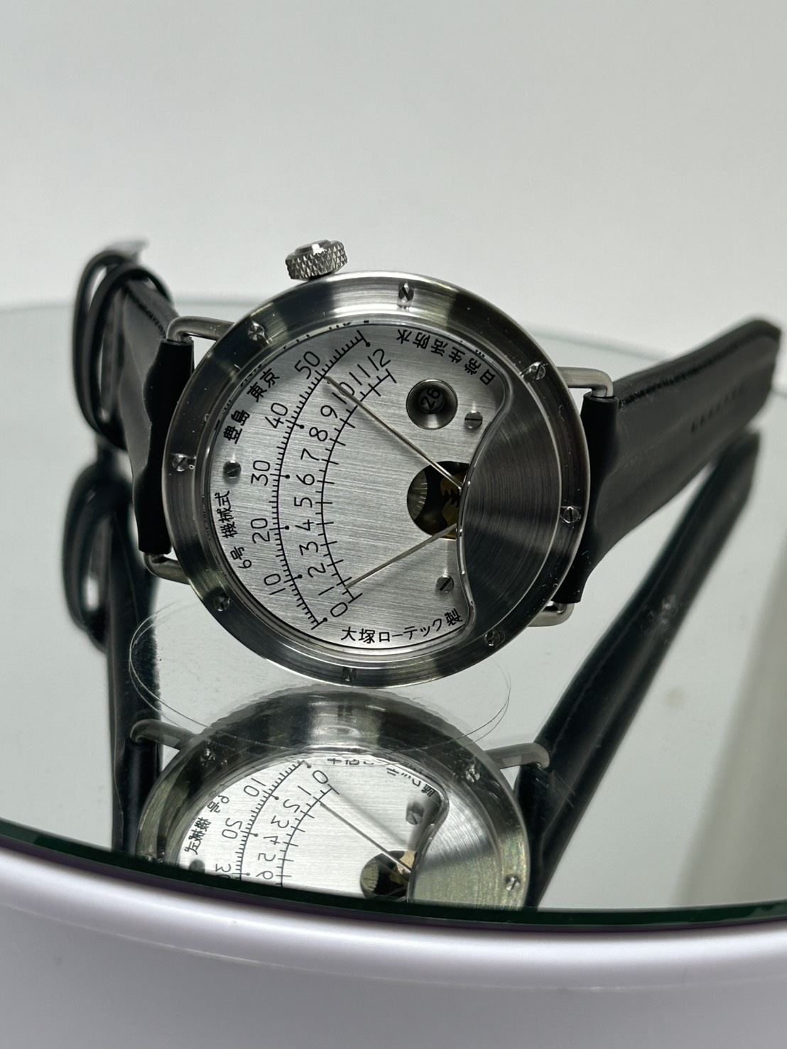 東京都大塚を拠点とする日本の腕時計ブランドである大塚ローテック、片山次朗氏によるデザイン、設定となり外装から内部モジュールまで、片山氏が設計・組み立てを行ってるとの事でムーブメントは国産のMIYOTA製を使用し、自社製モジュールを付加しているとの事。