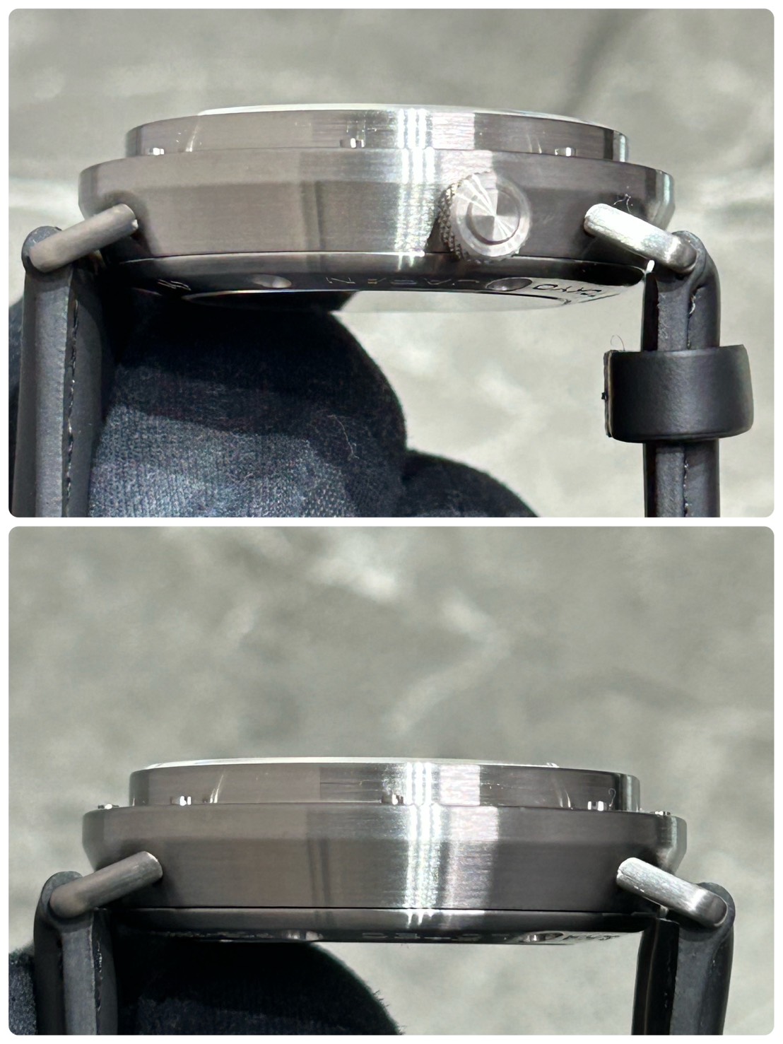 1、本体 2、カーフレザーストラップ(使用感なし) 3、ピンバックル(スレなし) 4、冊子類 5、内外箱 6、国内保証書
