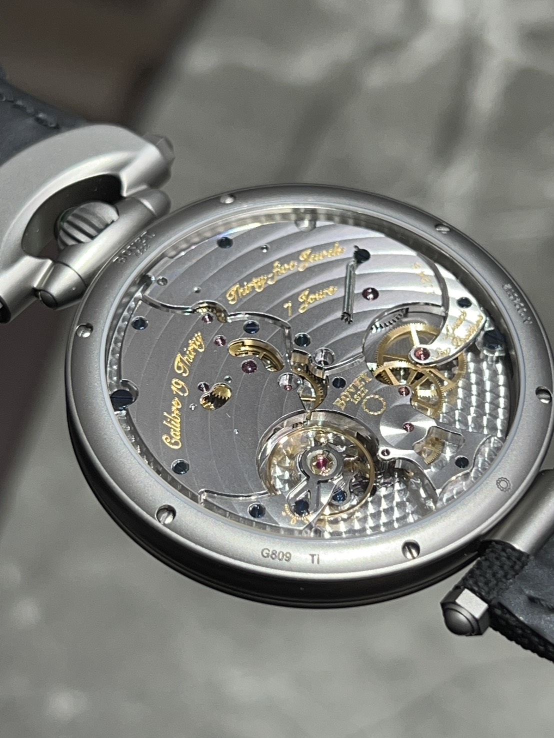 裏蓋からは7日間のパワーリザーブを誇る手巻きキャリバー15BM04がご覧になれます。