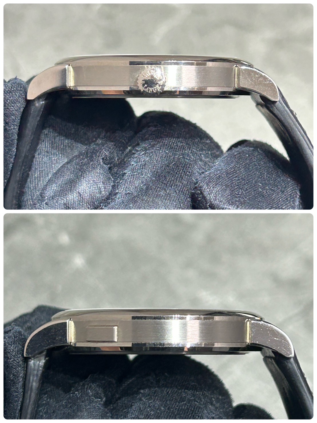 ご愛用に伴うスレが全体的にあり、5時側ケースに小傷、7時ラグ打痕、バックルにスレがございます。