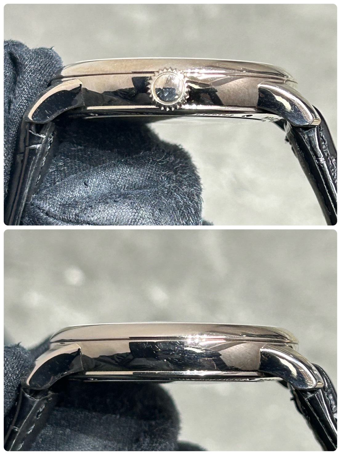 ケースはホワイトゴールド製となり、特徴的なのは薄いブラウンのインデックスとブラウンバイオレットの針になり非常に精巧で美しい仕上げでシルバーダイヤルが美しさを引き立たせております。