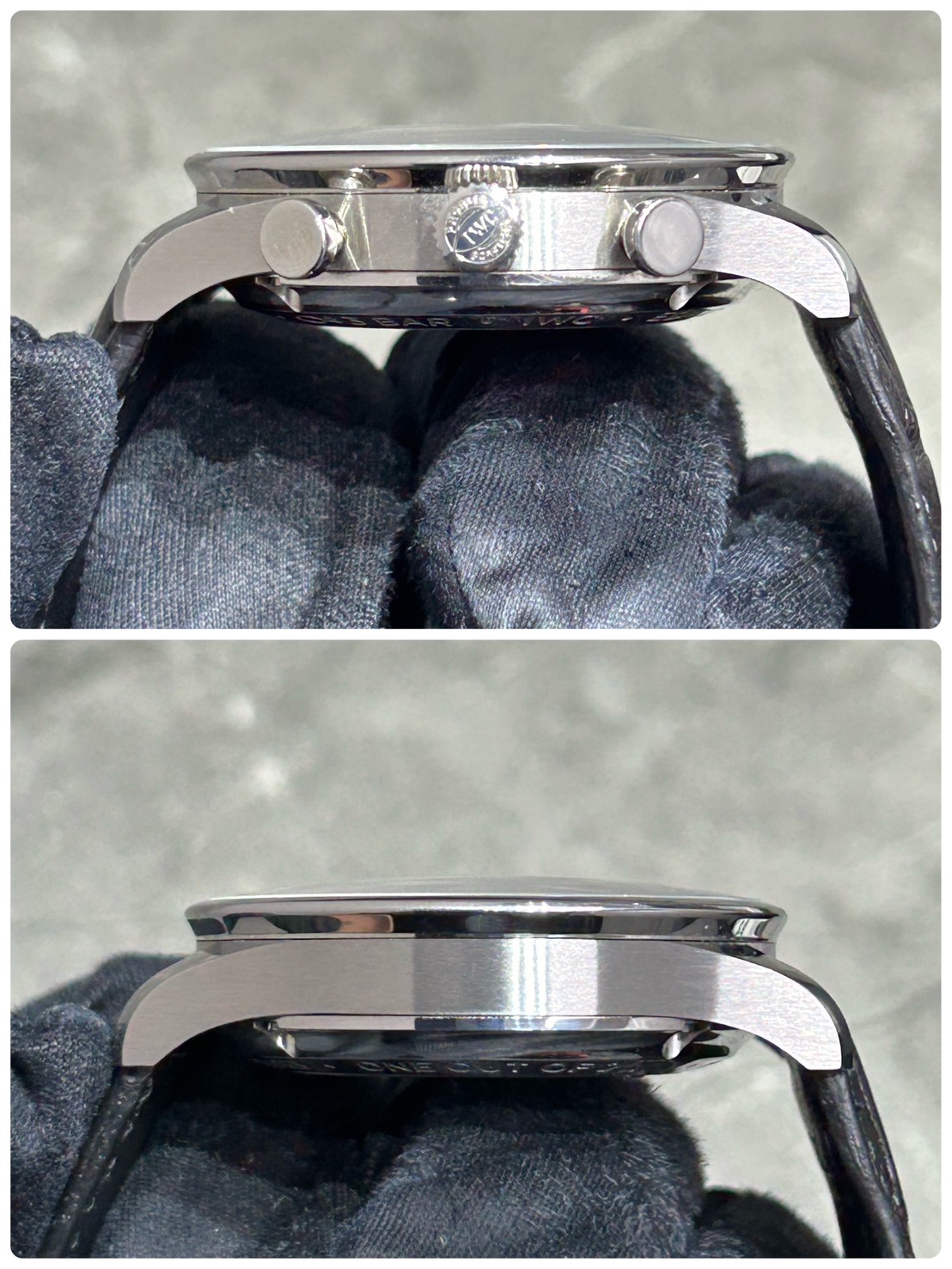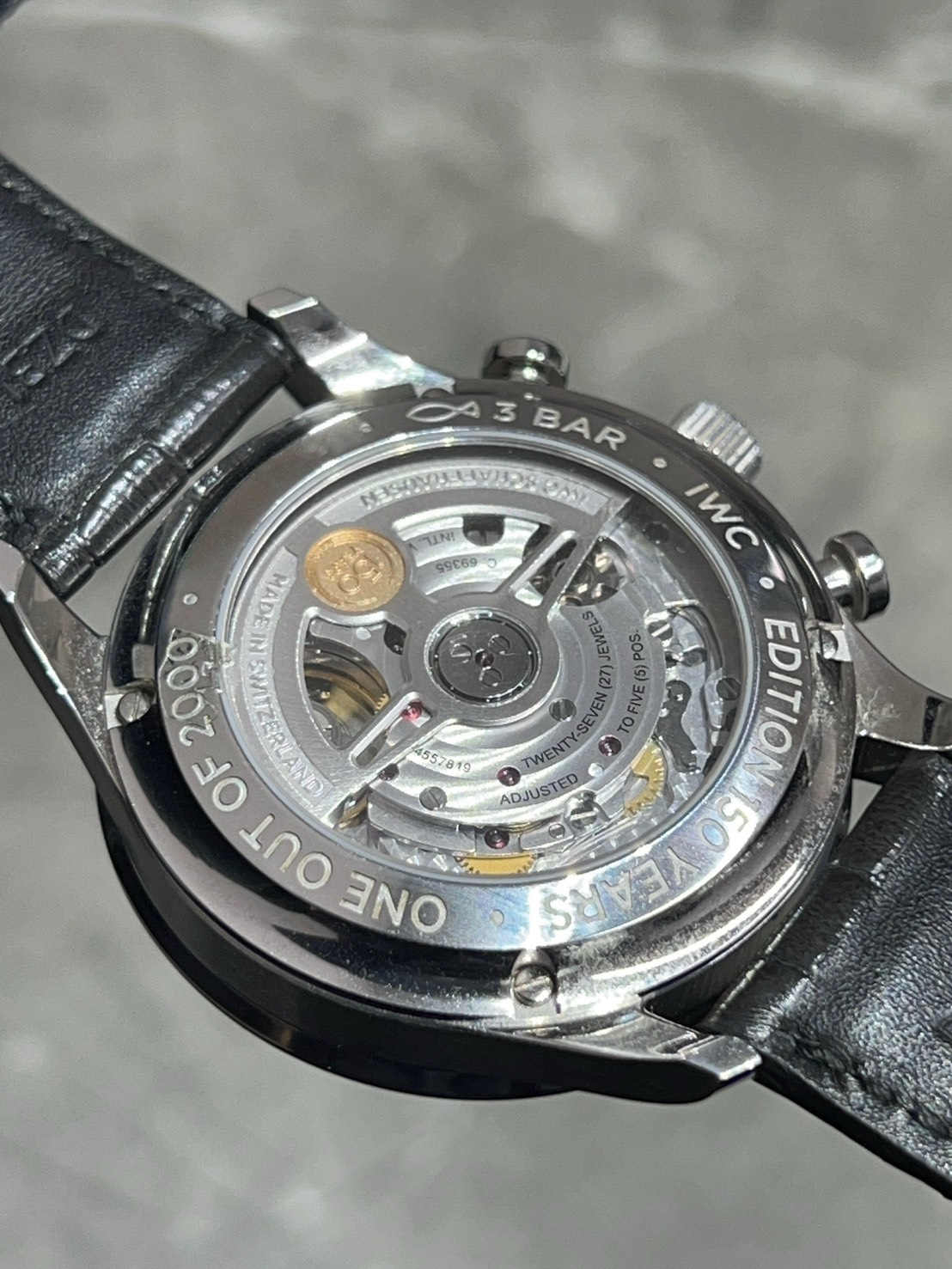 裏蓋からはIWC自社製クロノグラフムーブメント キャリバー69355がご覧になれ全体的な上品な佇まいは様々なシーンでご愛用頂けるモデルとなっております。