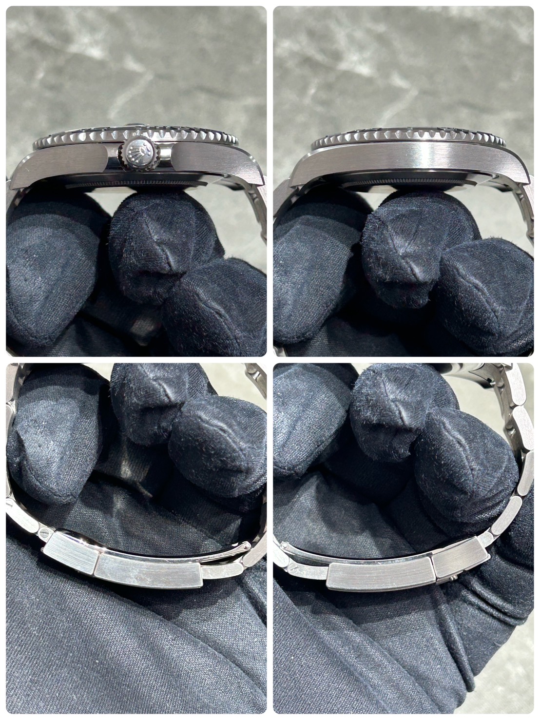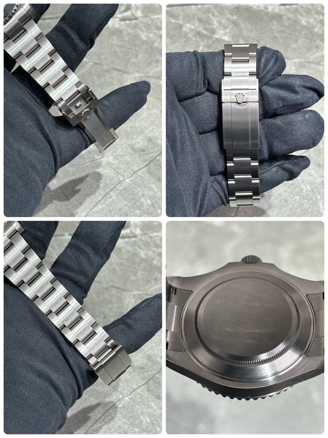 こちらはロレックスが特別に採用したグレード5のチタン合金であるRLXチタンのケース、ブレスで大きさから想像がつきにくい程の軽量(約107gとなっております。