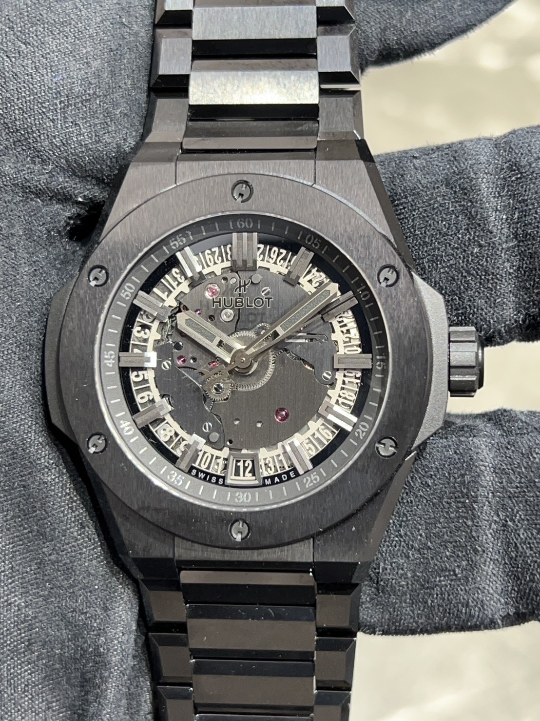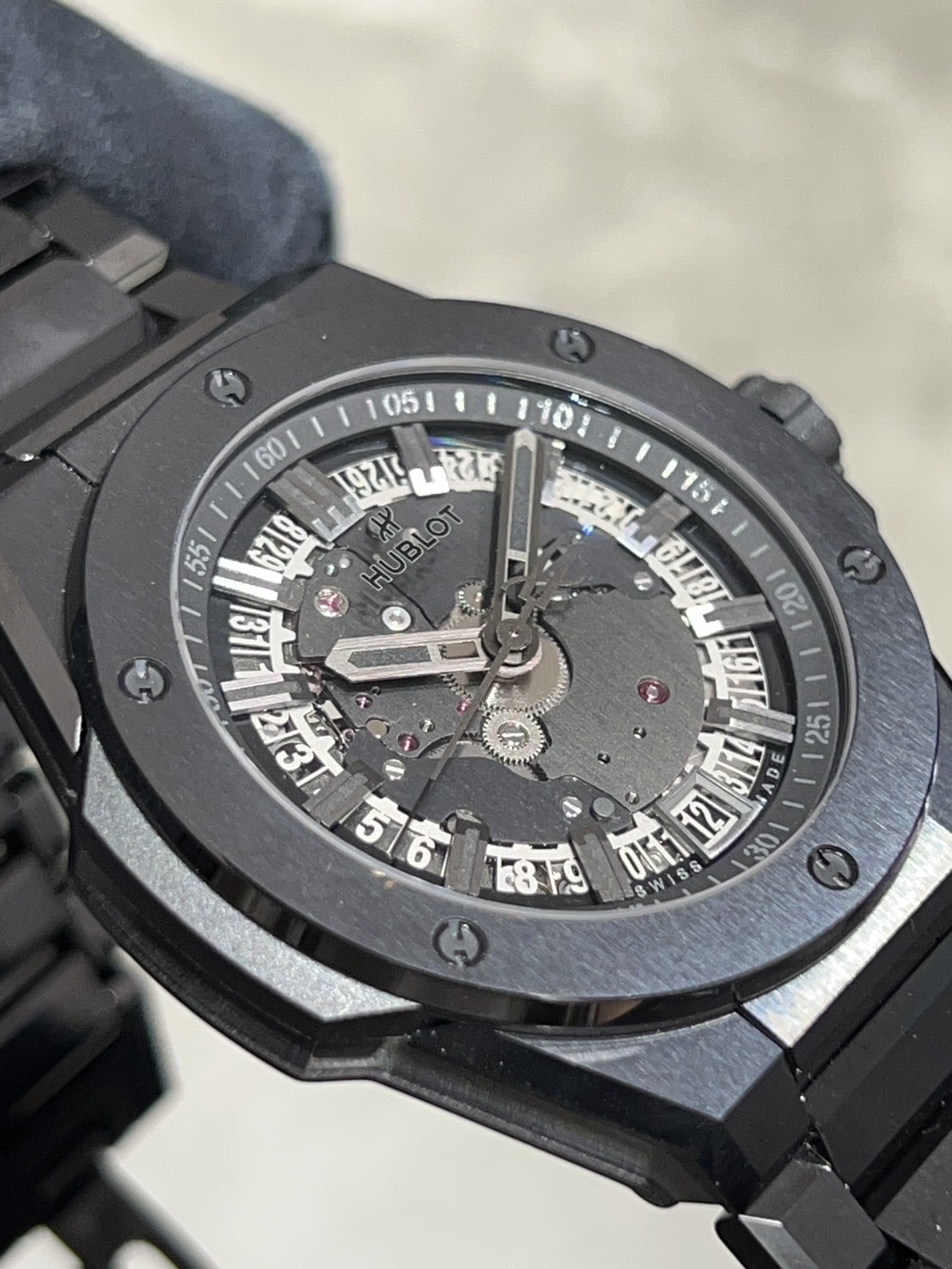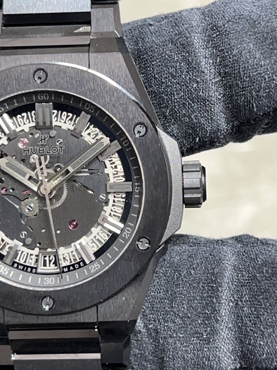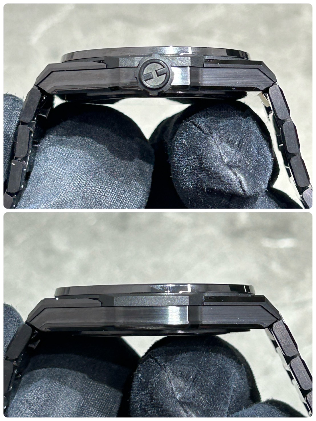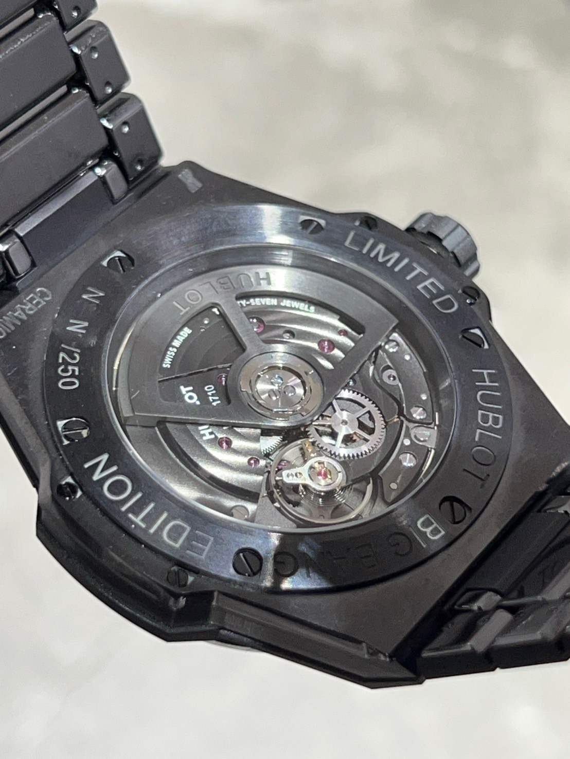 ブラックセラミックのブレスが光を反射しキラキラと高級感を醸します。