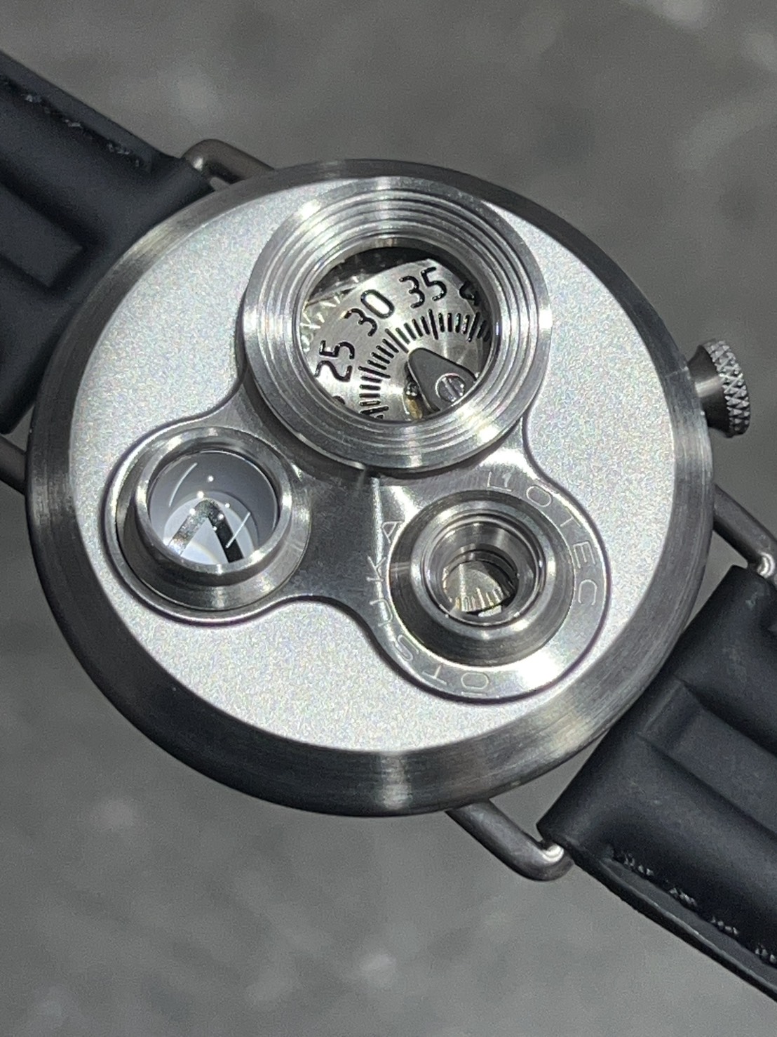 ケース上面にターレット状の3つの窓を配置する独創的なレイアウトが特徴的な大塚ローテック7.5号が入荷致しました。