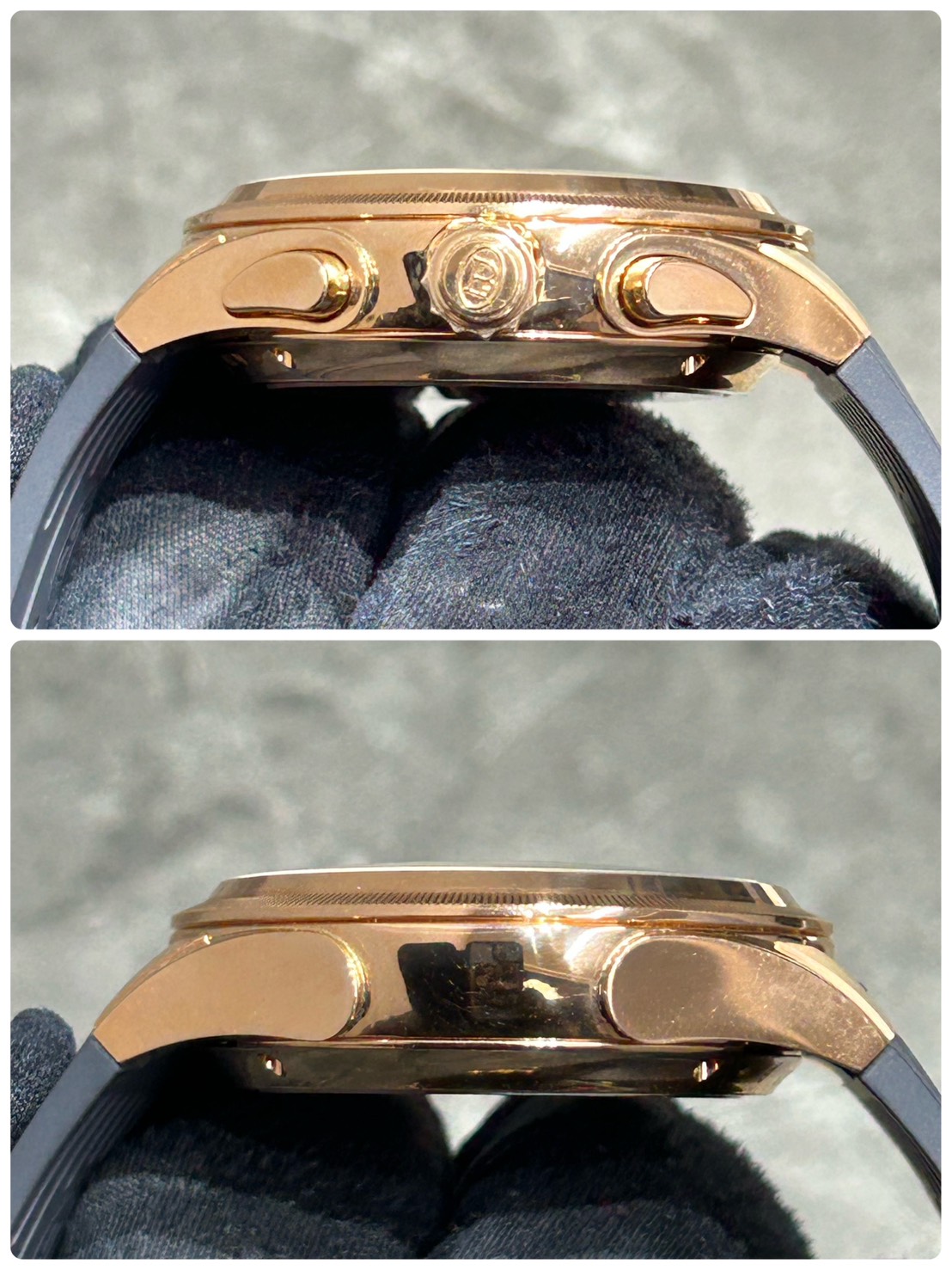 全体的にご愛用に伴う微細なスレ、ベゼル小傷がうっすらと確認できるレベルの美品です。