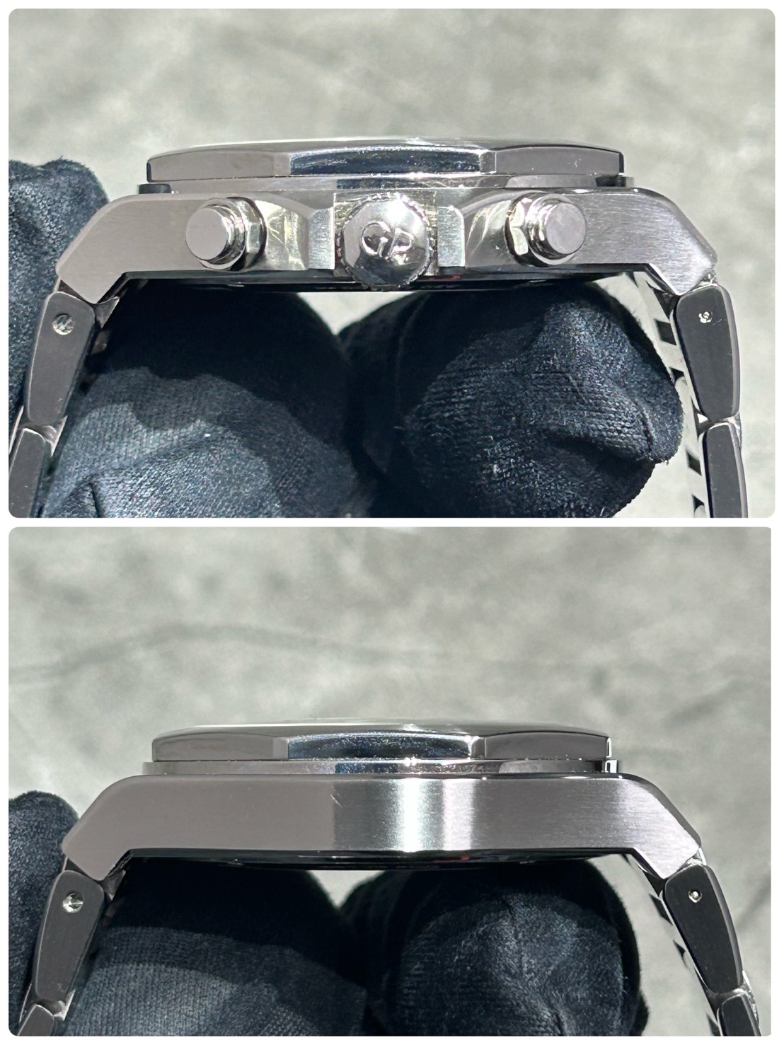 ご愛用に伴うスレは全体的にあり、6時位置ベゼルに極小の小傷がございます。