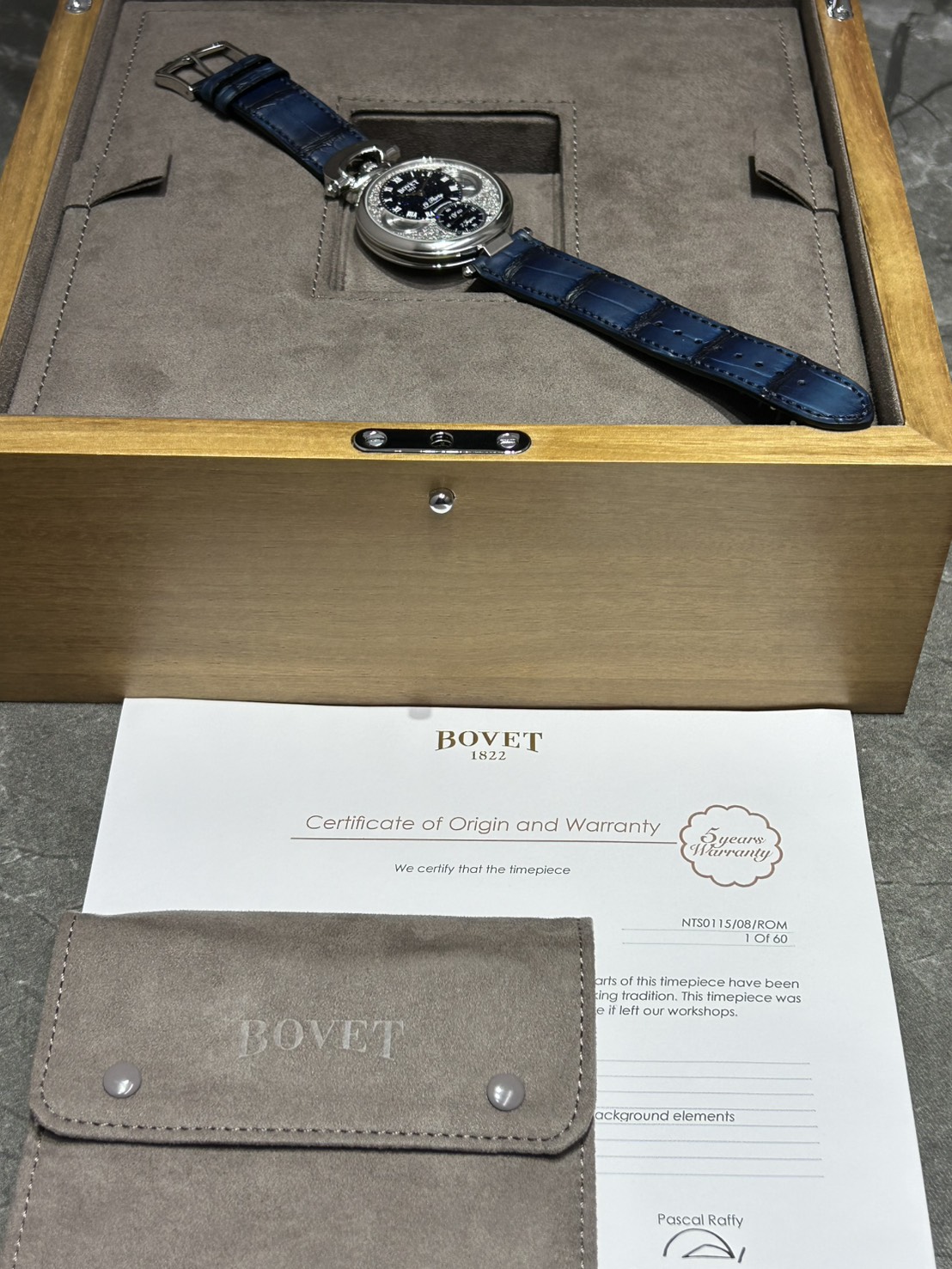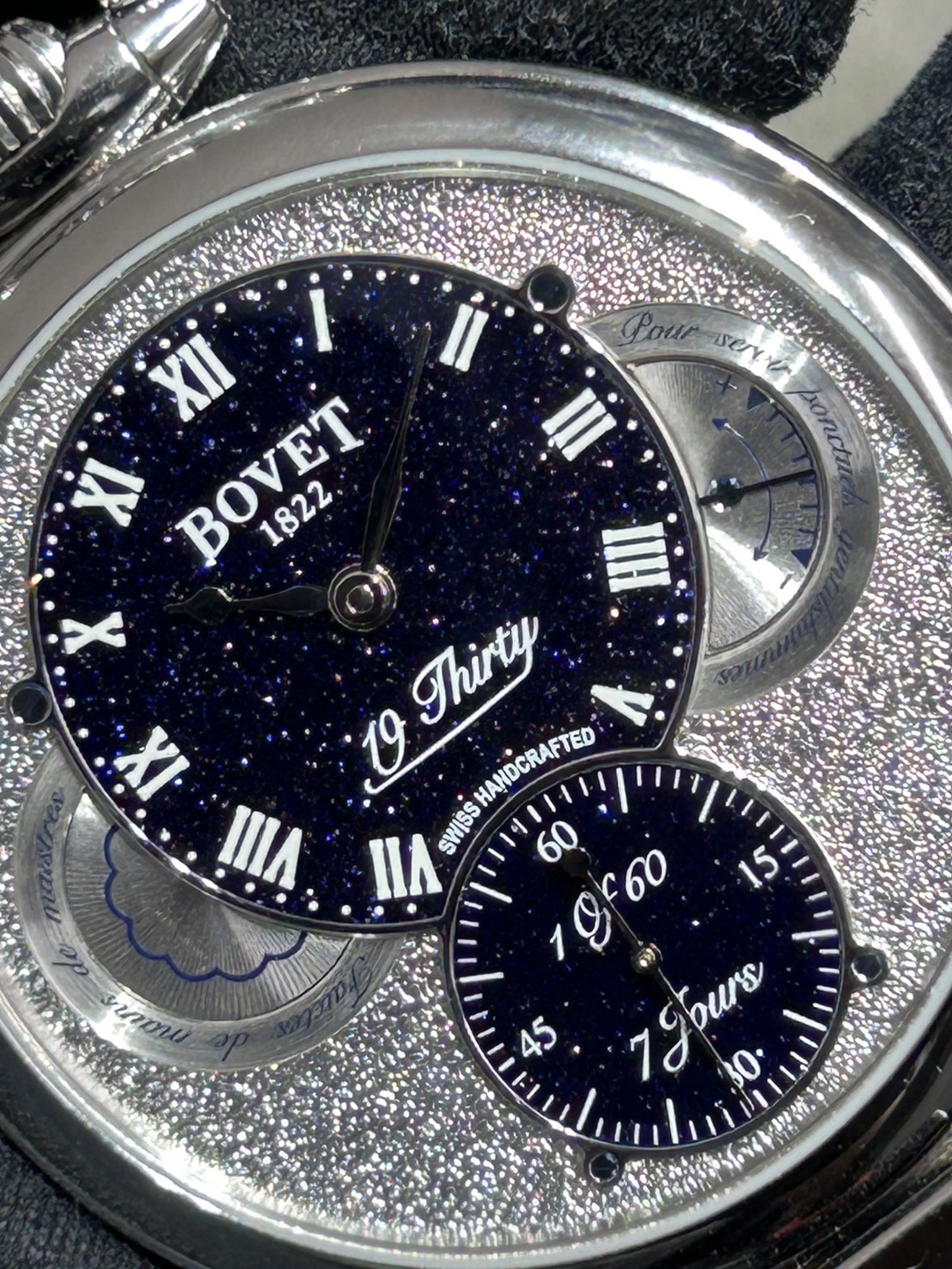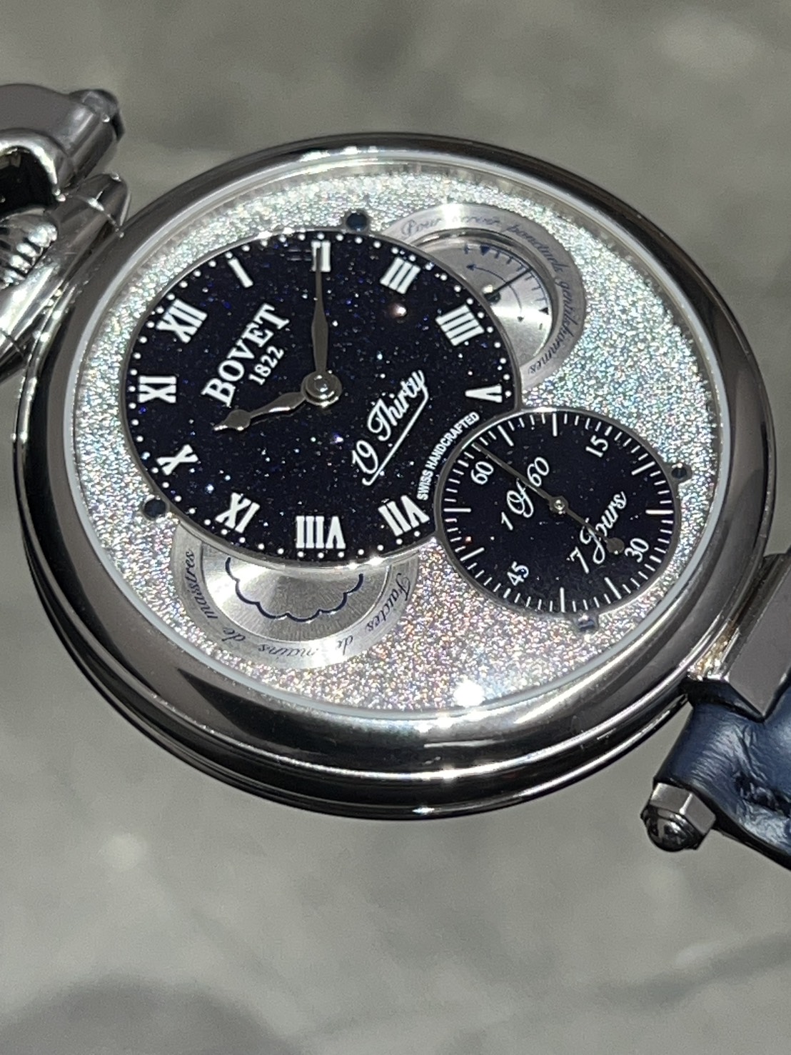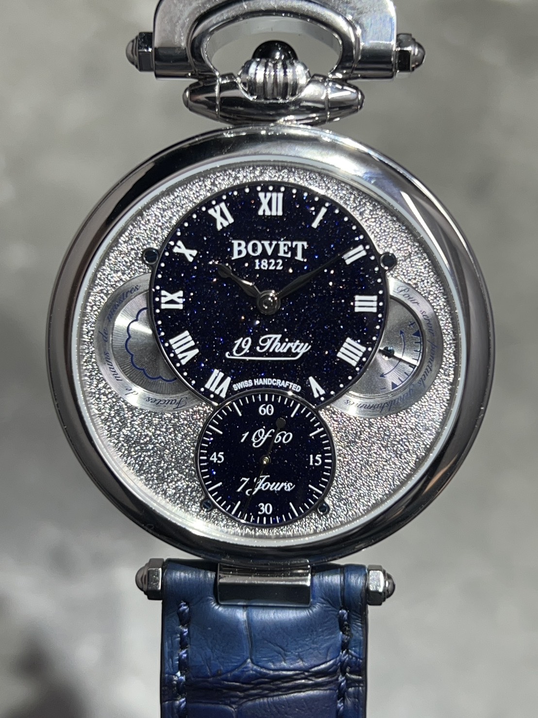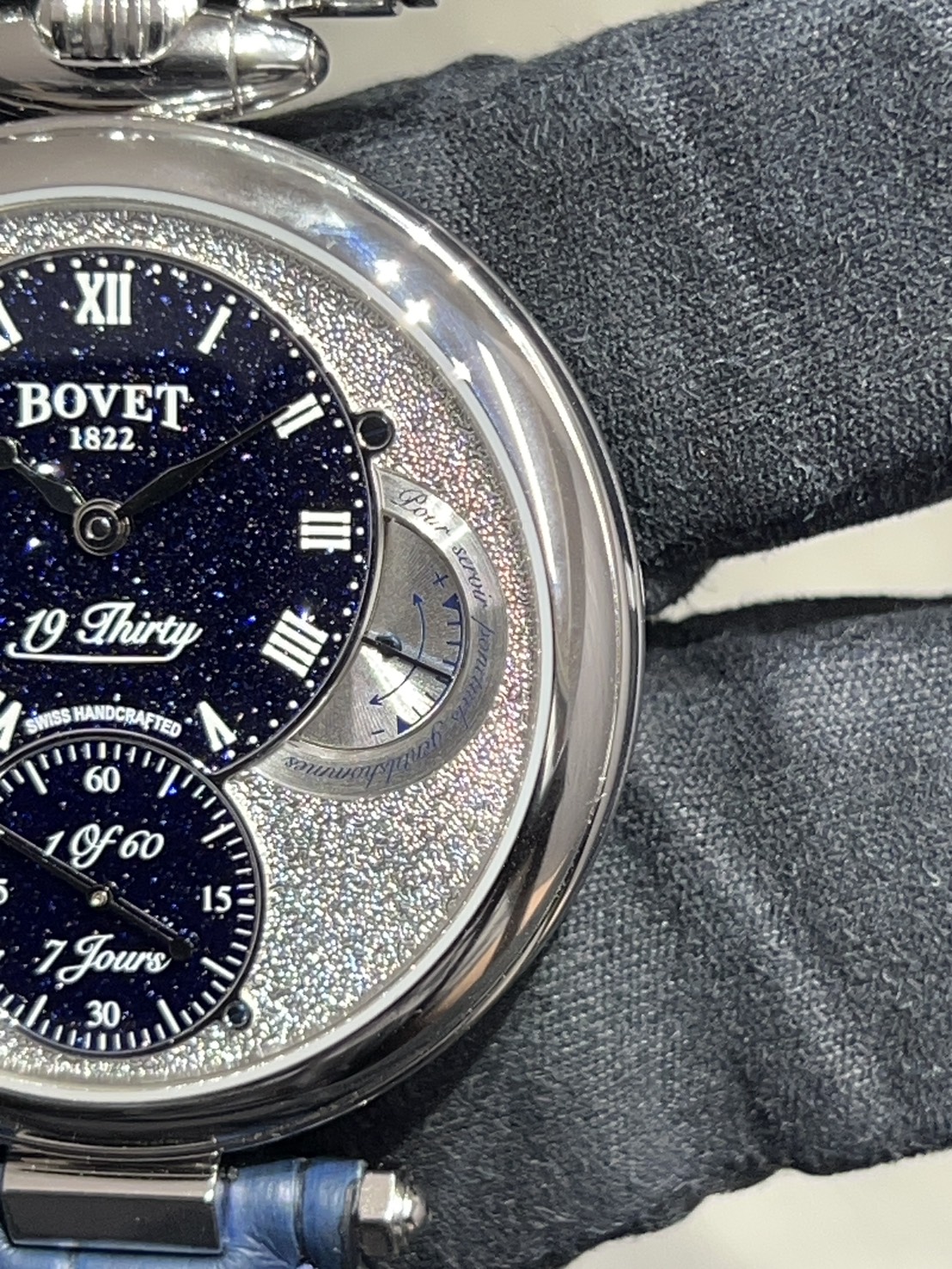 同モデルは1930年代の懐中時計をモデルにデザインされており、ボヴェの象徴であるリューズが12時側にセッティングされ懐中時計の雰囲気と左右どちらの利き腕でもなんの違和感もなくご愛用頂けるなんとも美しいモデルとなっております。