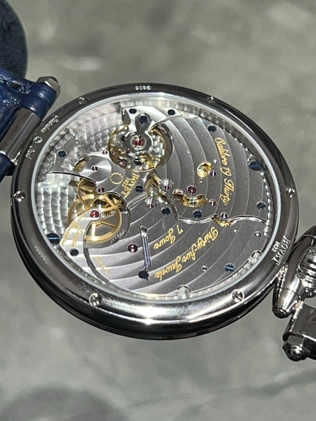 裏蓋からは7日間パワーリザーブを誇るCal.15BM04を鑑賞でき、パワーリザーブインジケーターも備えている為実用性にも長けております。
