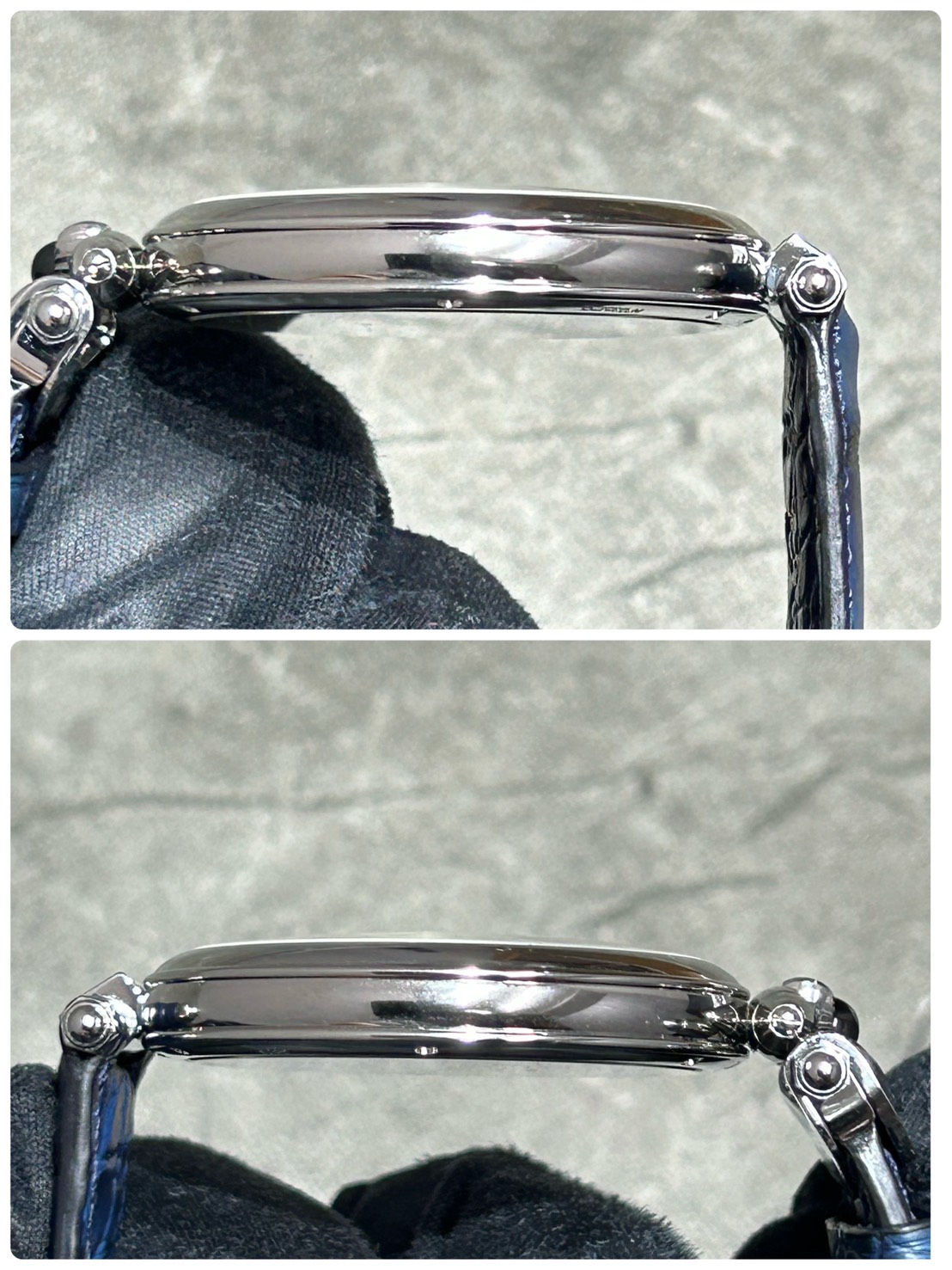 使用感のない個体になります。年式も1か月以内で未使用コンディションでございますがリューズ開閉の際についたと思われるスレ傷が確認できます(最後の写真参照)