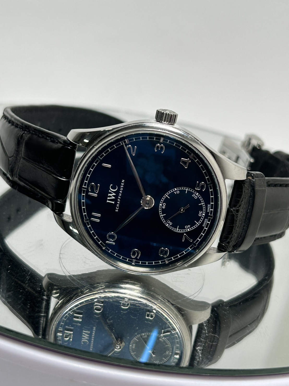 スイスの高級時計ブランドで1930年代にポルトガル人商人の依頼で「大型で高精度な腕時計」として誕生したポルトギーゼ、今回は40.40㎜のステンレスケースに鮮やかなブルー文字盤、黒アリゲーターストラップを組み合わせたポルトギーゼ・オートマティック40が入荷致しました。