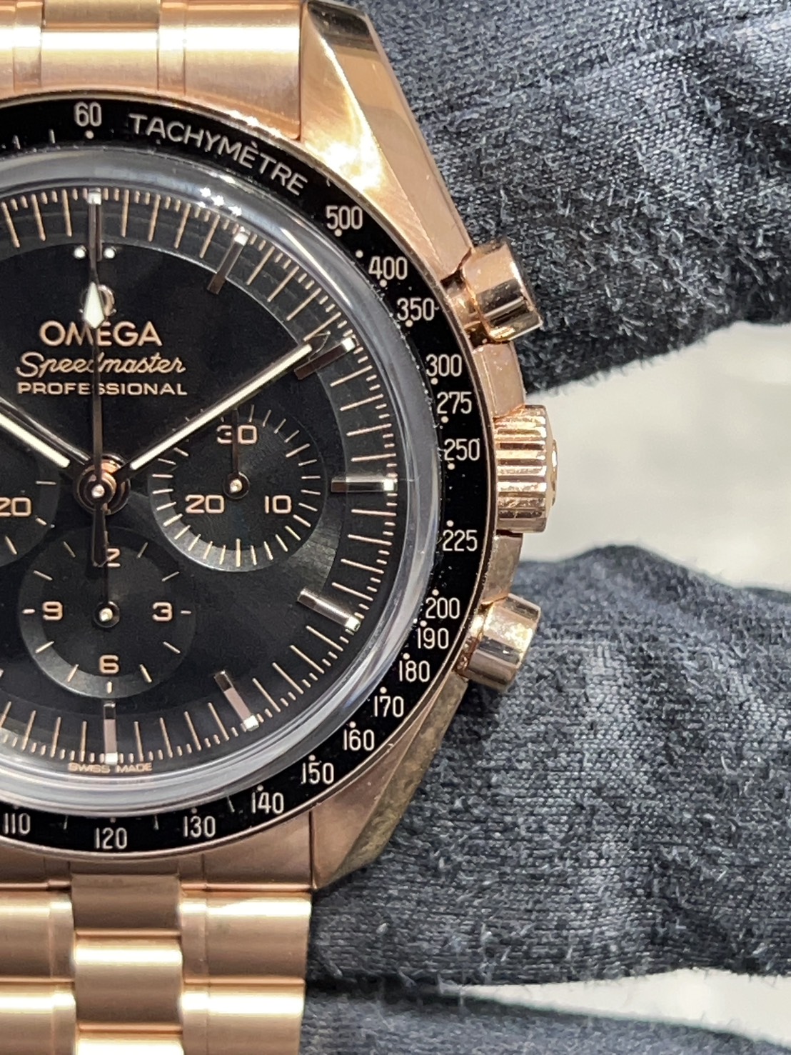 アポロ11号が月面着陸した際、船長や操縦士の腕に巻かれていたのがスピードマスターでこれをきっかけにムーンウォッチの愛称となりました。