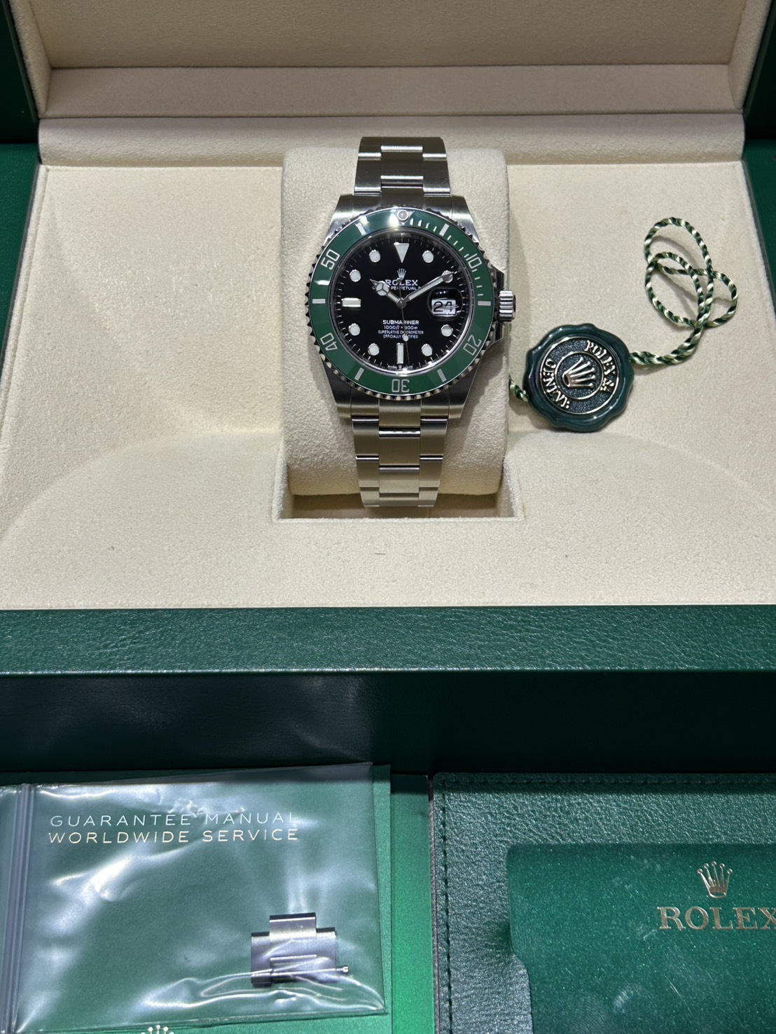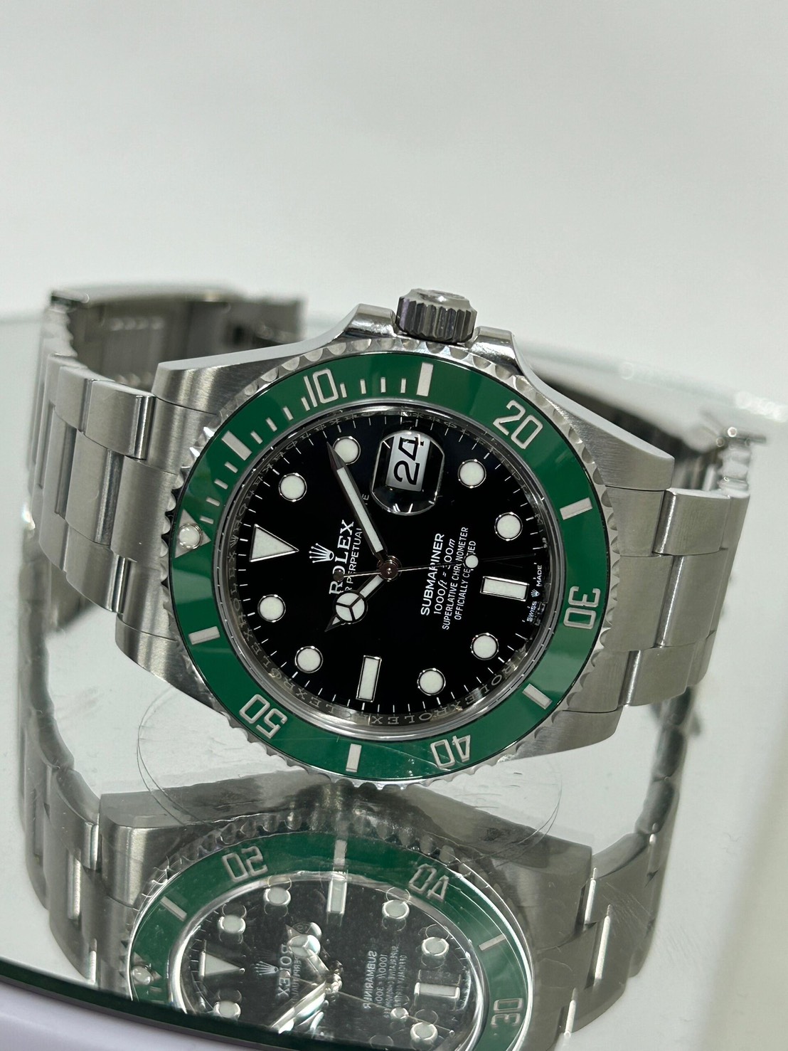 今回は光沢のあるグリーンベゼルにブラックの文字盤がスタイリッシュな通称スタバの愛称で親しまれているグリーンサブが入荷致しました。