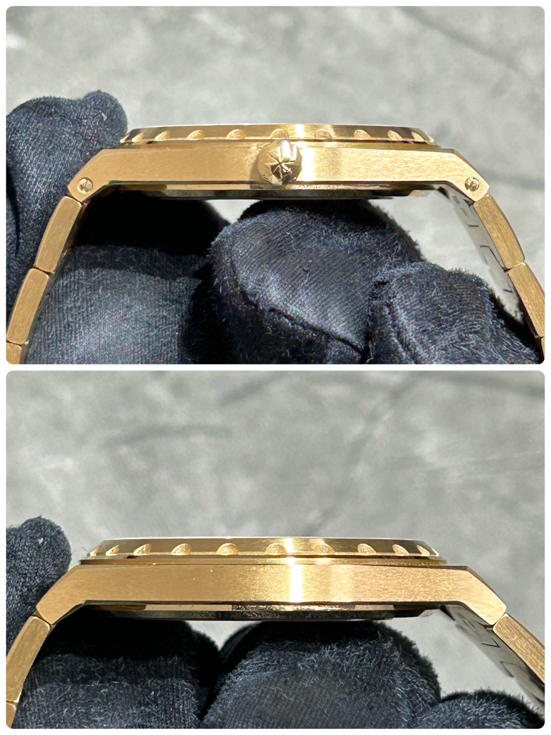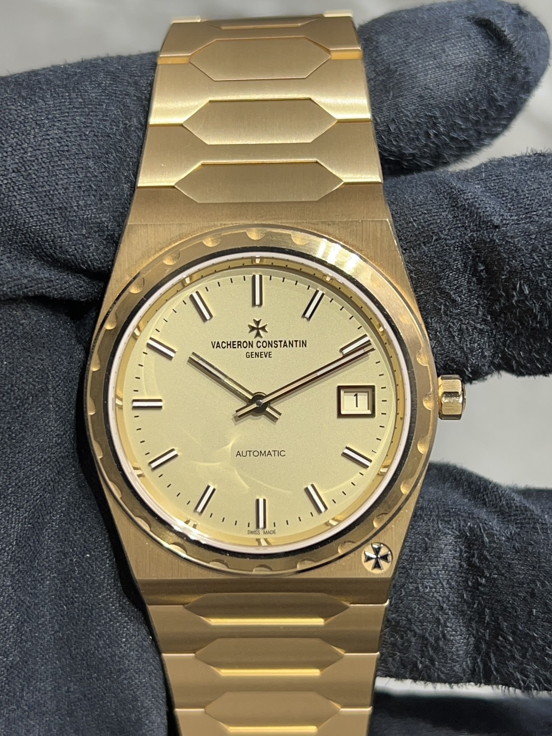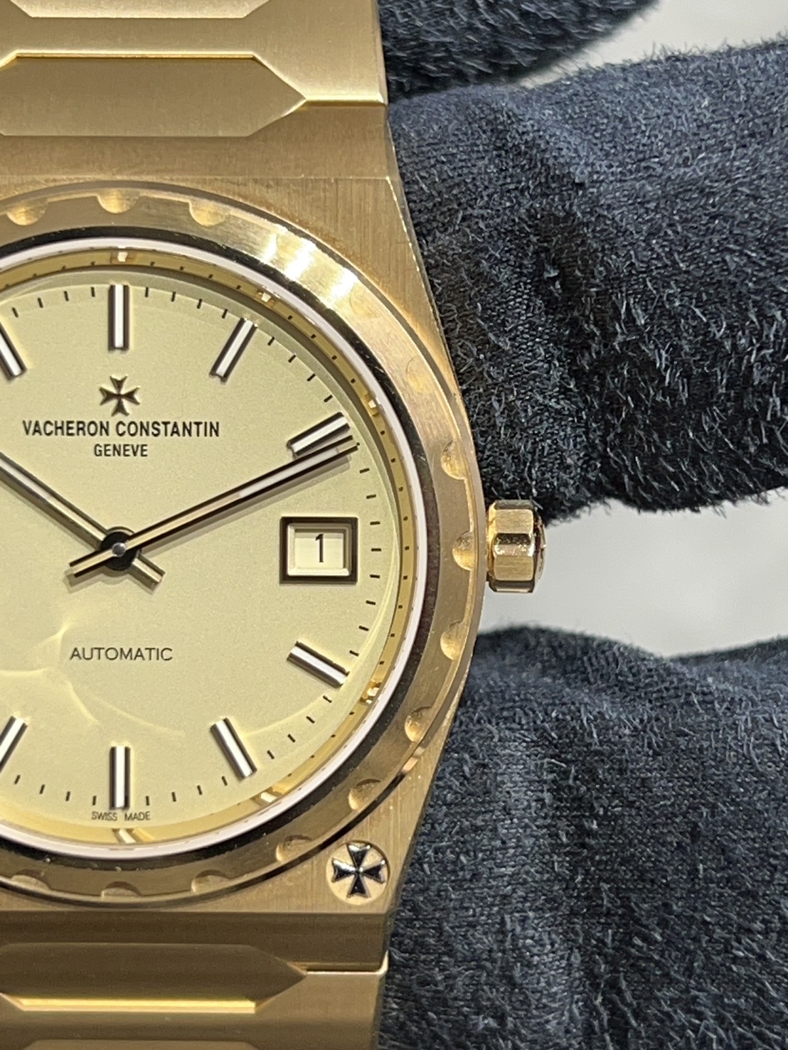 ベゼルは丸形の台の上に切れ込みの入ったベゼル、そしてラグにマルタのマークが装飾されているという大変おしゃれな佇まいとなっております。