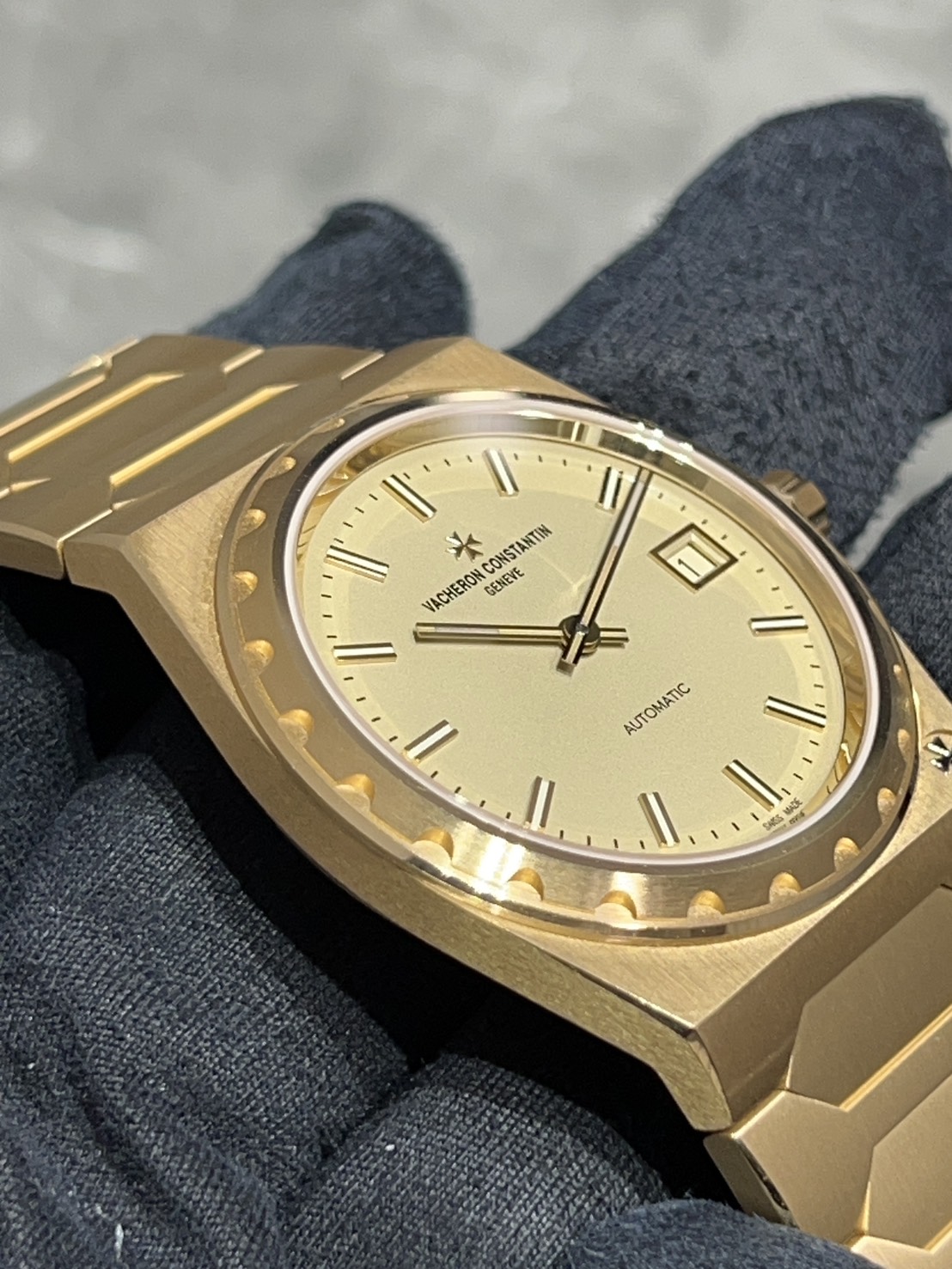 イエローゴールドのケースにゴールドドーンの文字盤も非常にオシャレで夜光はオリジナルの222に合わせて(トリチウム)グリーンに光ります。