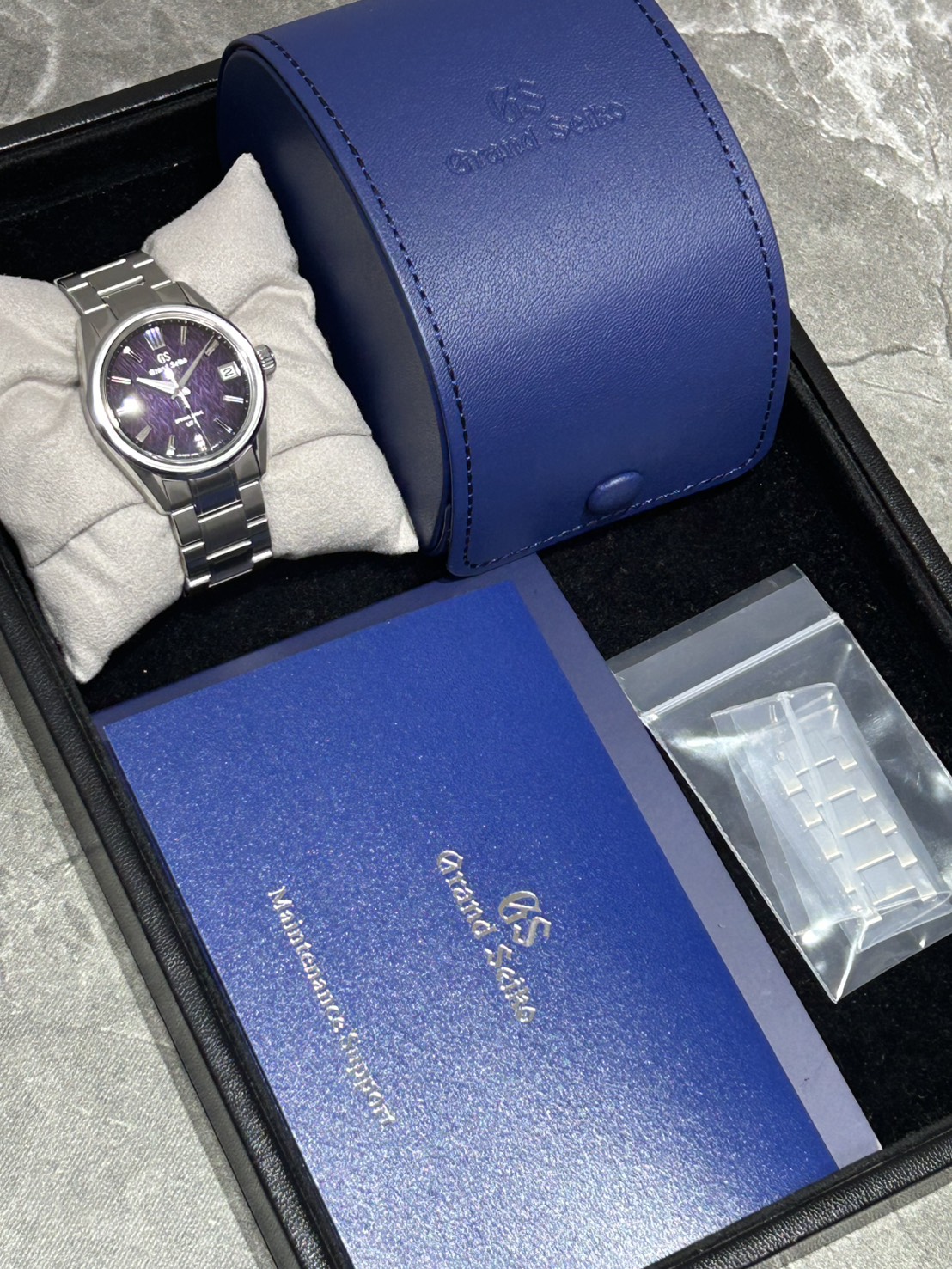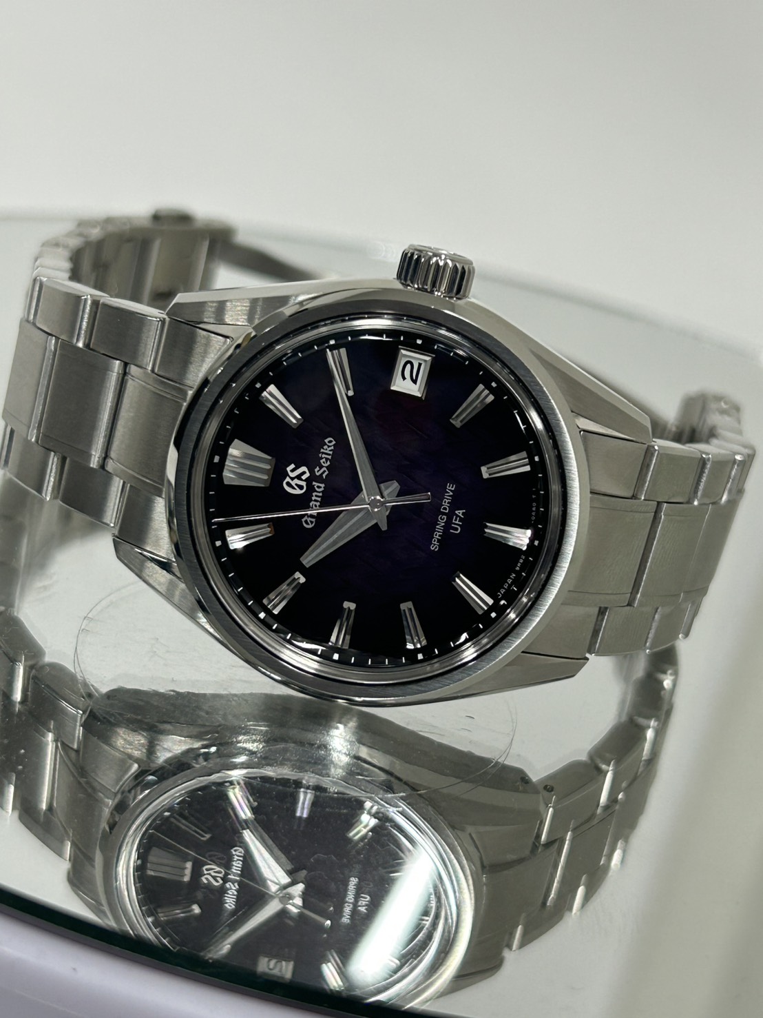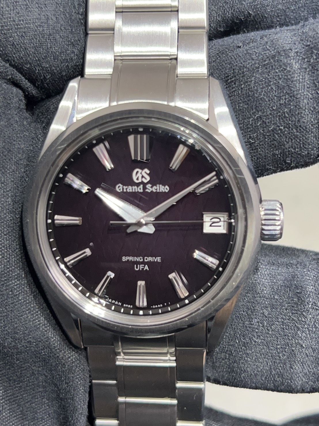 スポーティさとエレガントさに長けるエボリューション9コレクション、こちらのSLGB005はスプリングドライブU.F.A.の限定モデルになり、美しいバイオレット文字盤が印象的なモデルです。