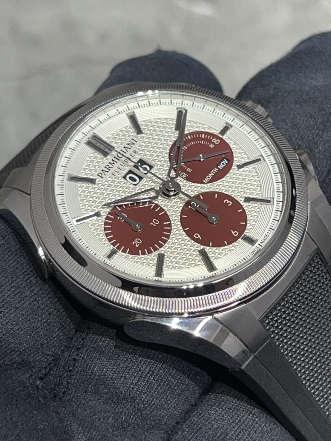 スイスの高級時計ブランド、パルミジャーニ・フルリエが2020年に発表した、スポーツモデルのコレクションであるトンダGT、今回はギョーシェが施されたシルバー文字盤にグラナタ、カレンダー機能が備わったトンダGTクロノグラフが入荷致しました!