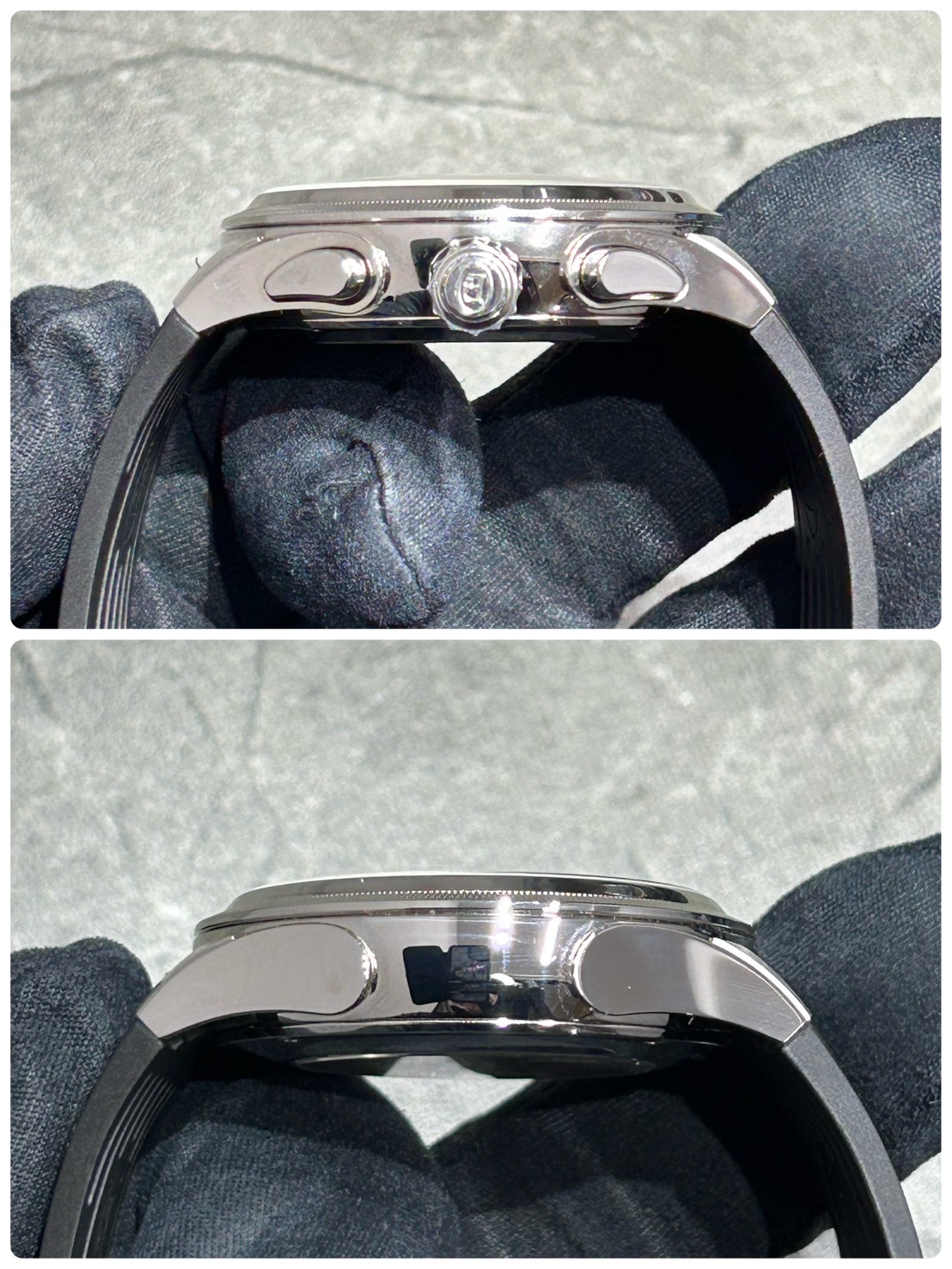 全体的にご愛用に伴う微細なスレ、小傷が確認できます。バックルやケースサイドには強い光に当てると角度によって最後の写真のようなスレ傷が確認できますが深い傷等はなかったため中古美品ランクにて出品させて頂きます。
