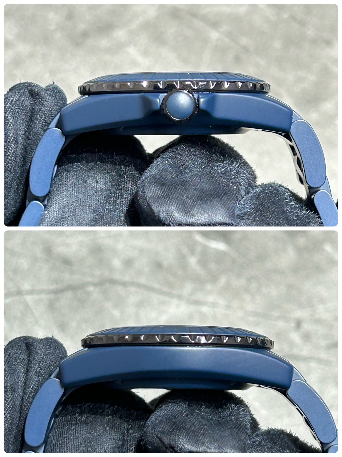 ケース、ブレスは新作のマットブルーセラミックに加え、ベゼルインサートもセラミック製で一新されており華やかさが増しております。