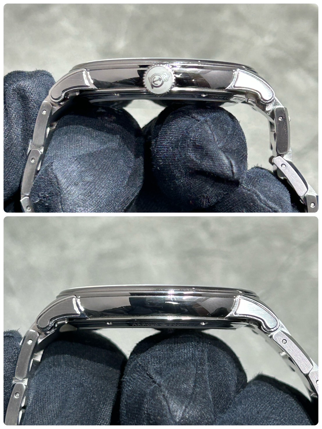 41.50㎜のステンレス製ケースは8.70㎜と非常に薄く、袖口への収まりも良く様々なシーンでご愛用頂けるモデルとなっております。