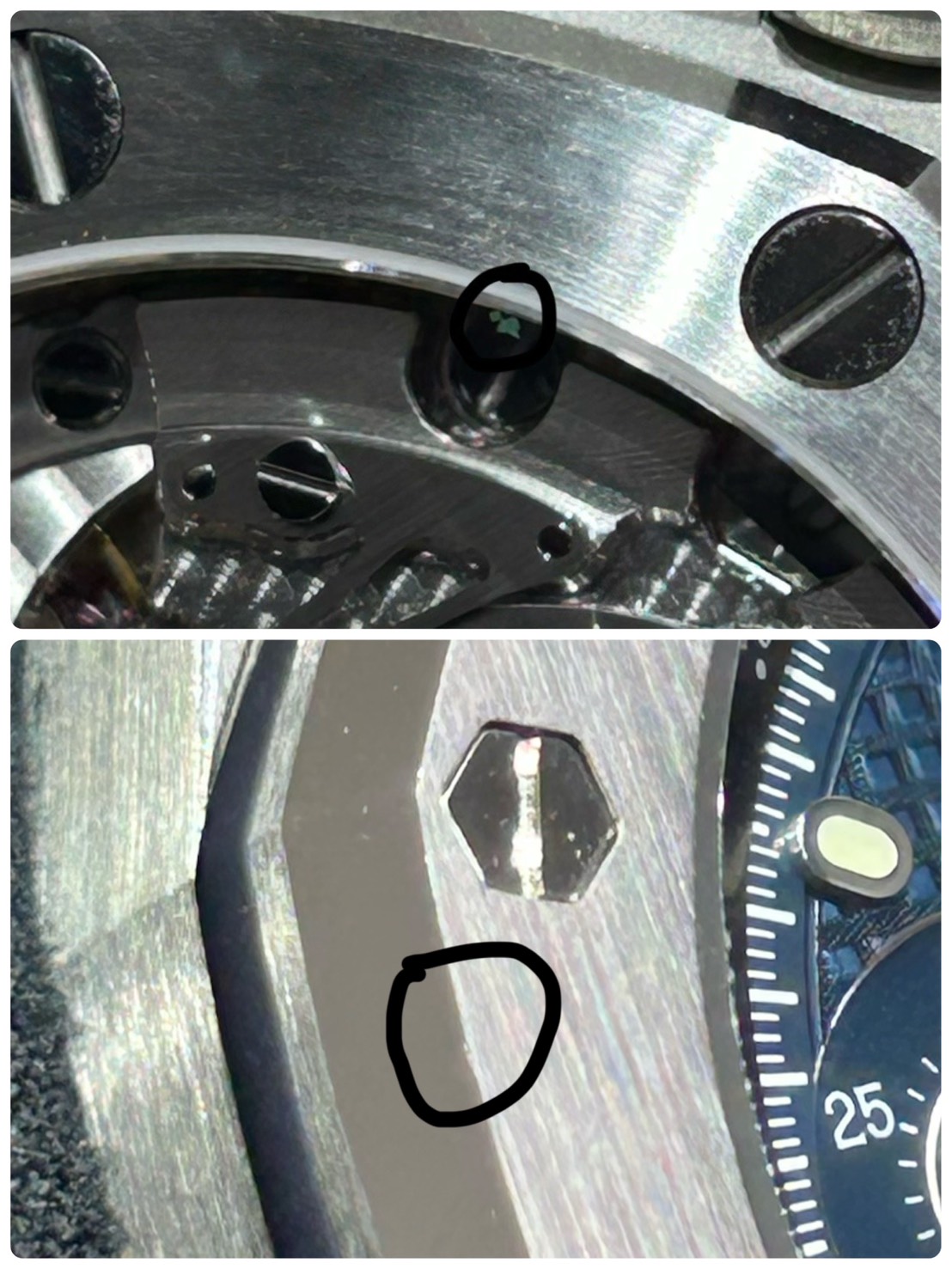 裏蓋ガラス内部に言われるとあ、確かにある!というレベルの埃が混入しておりますので予めご承知おきください(最後の写真参照)