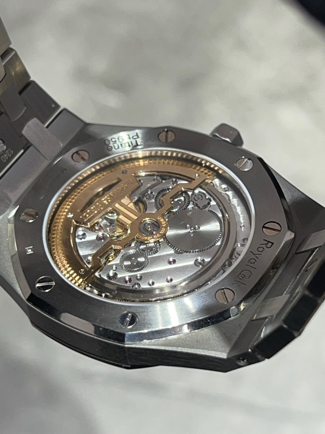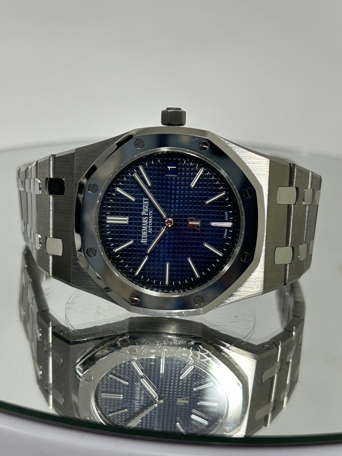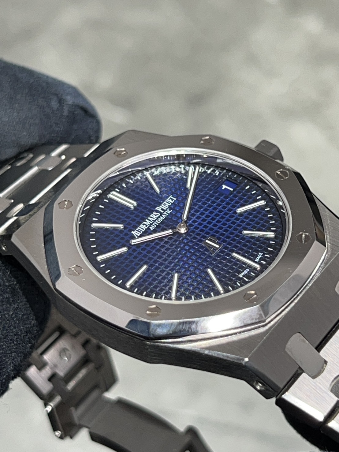 1972年に発表された初代ロイヤルオークを完全再現したオーデマピゲファンの憧れであるエクストラシン、こちらはチタンケース、プラチナベゼルの希少なモデルになります。