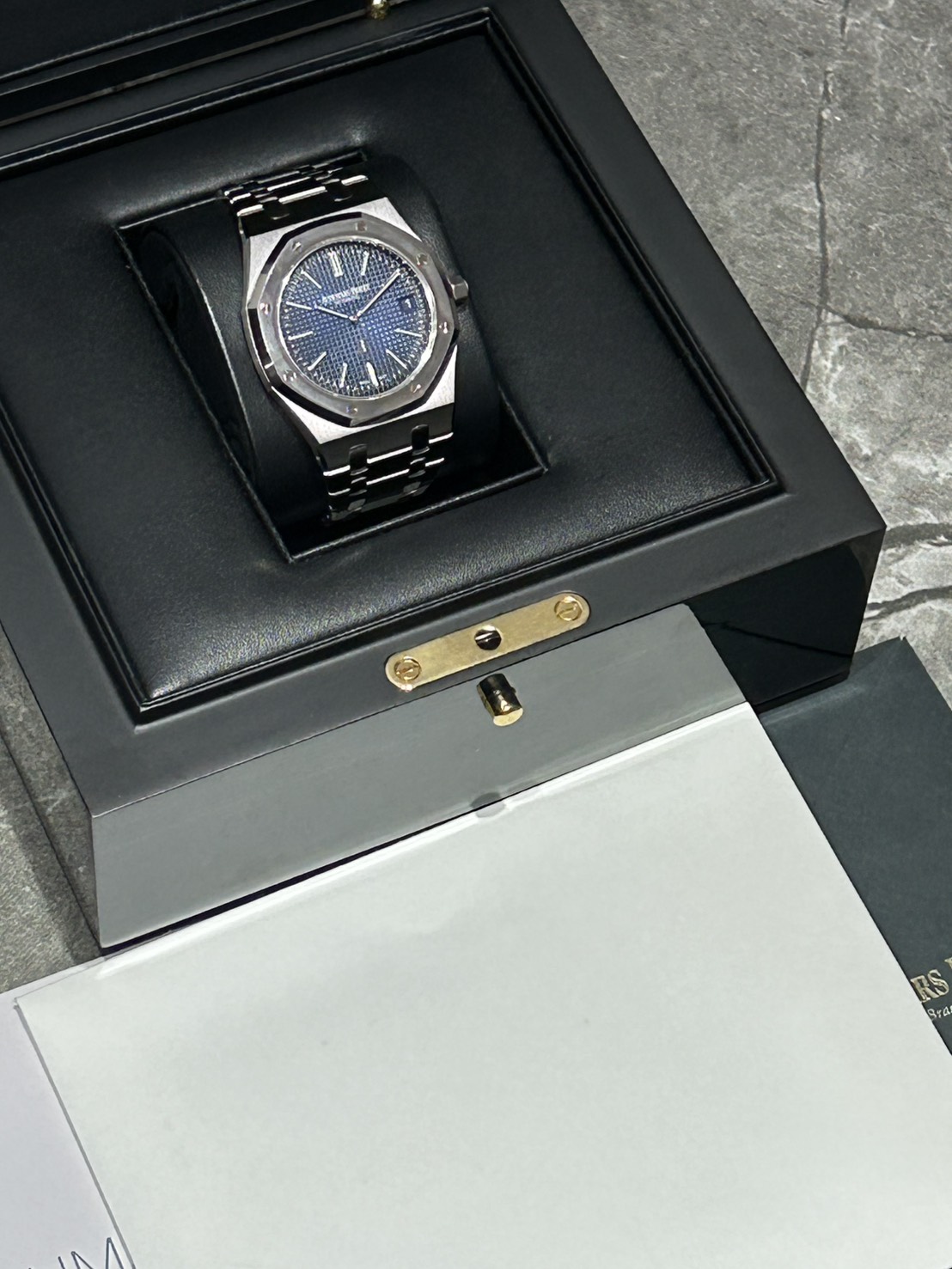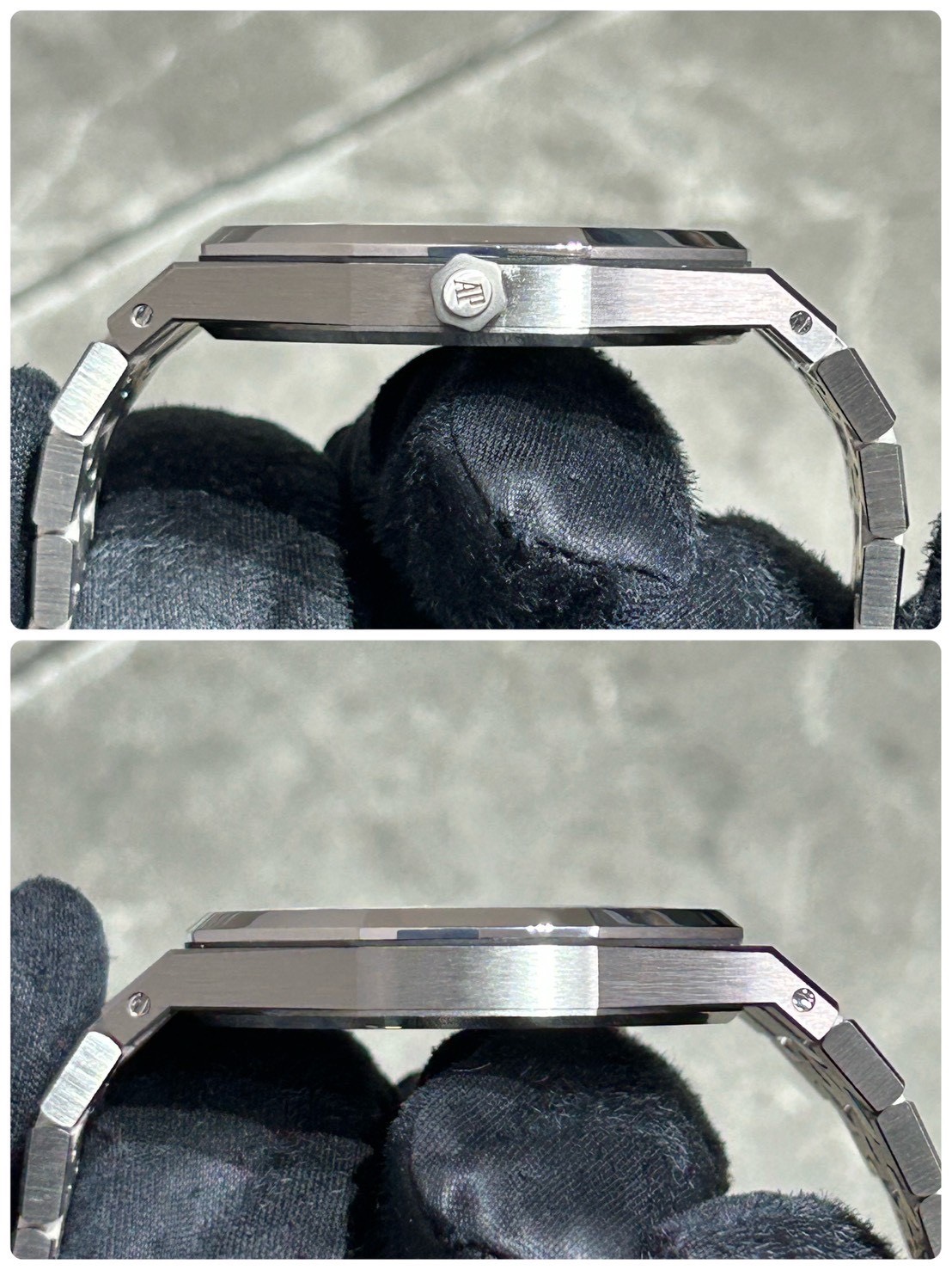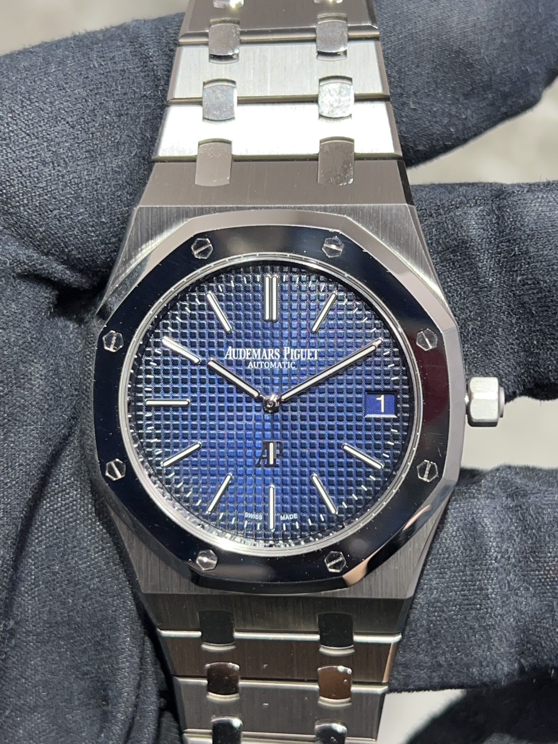 1972年に発表された初代ロイヤルオークを完全再現したオーデマピゲファンの憧れであるエクストラシン、こちらはチタンケース、プラチナベゼルの希少なモデルになります。